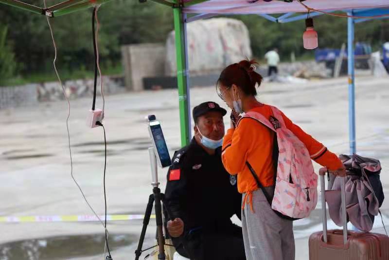 返校学生佩戴口罩,配合工作人员进行身份核验,提交核酸检测报告并检测体温,有序进入校园。