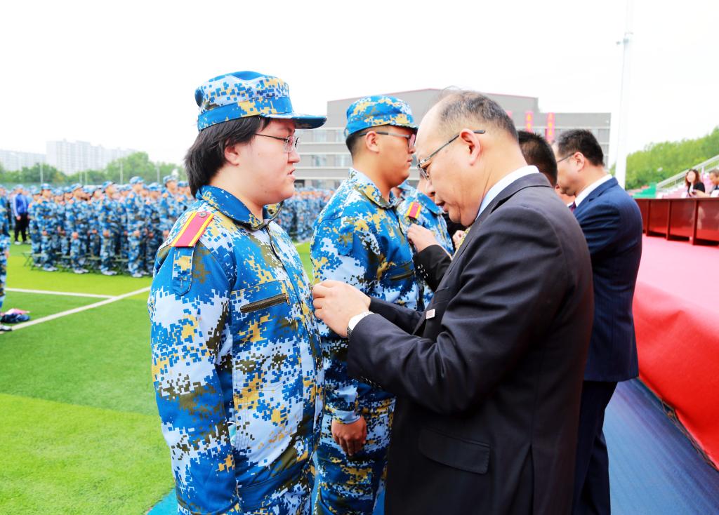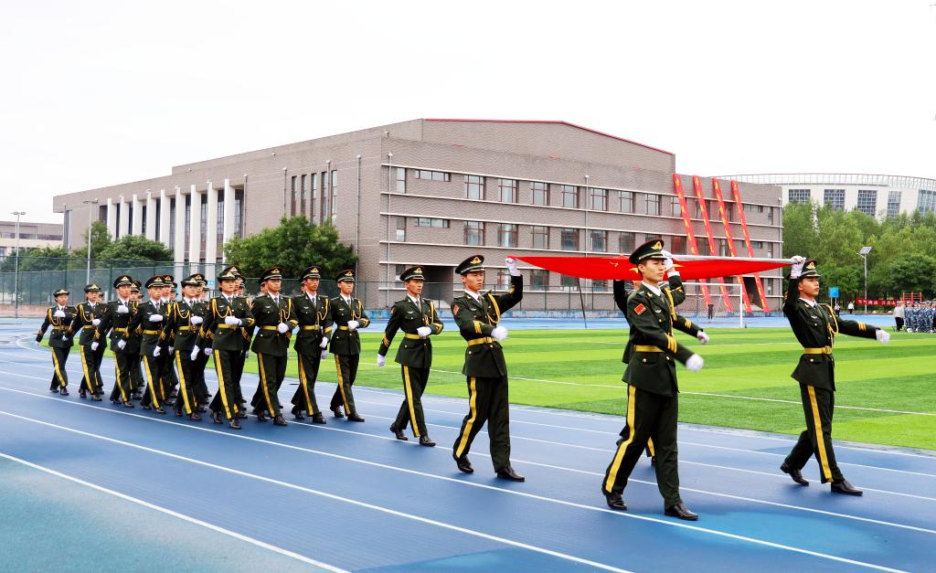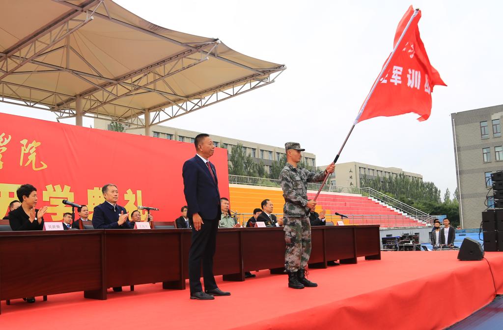 副校长郝根彦宣读军训团组织机构的组成,树学峰为军训团授旗。