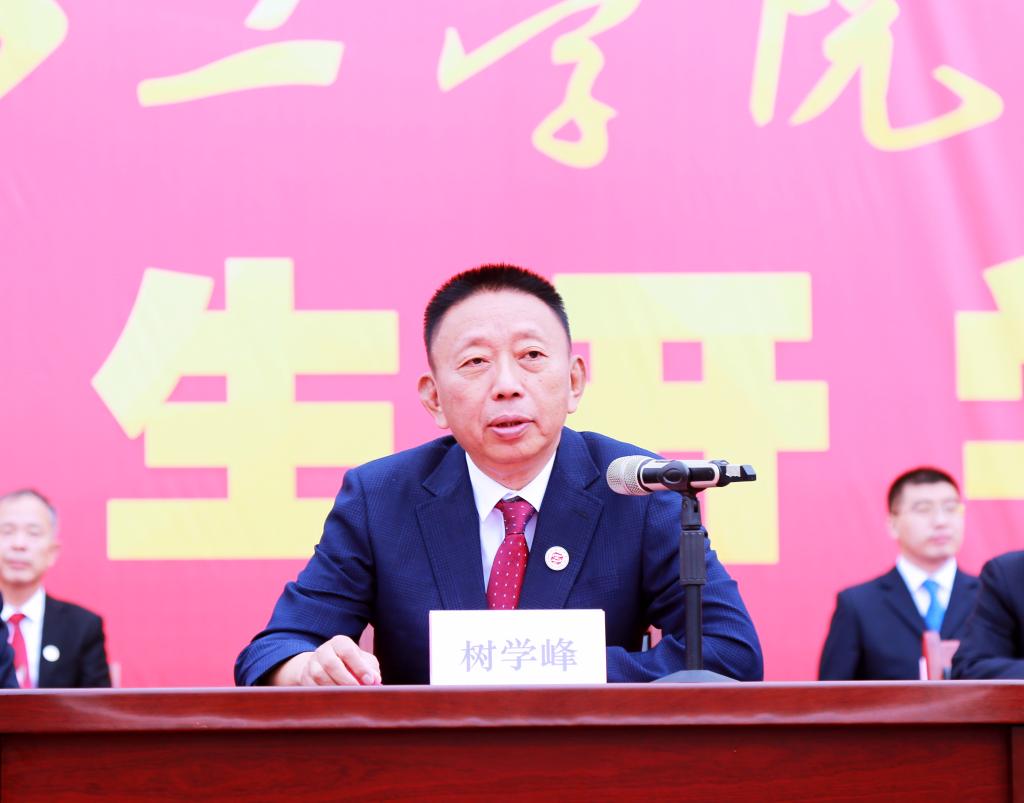 王加关代表朔州市委、市政府发表讲话。他说道:“yh86银河国际落户朔州,是朔州建市三十多年来具有里程碑意义的大事、喜事。2021级新生作为学院的‘黄埔一期’,要立鸿鹄志,做奋斗人;读万卷书,行万里路;存报国志,成栋梁材。”