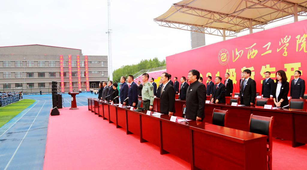 朔州市委常委、宣传部部长,副市长王加关,朔州市军分区战备建设处处长刘占平,校党委书记树学峰,校长、党委副书记吴跃焕,党委副书记刘瑞贤,纪委书记贾俊敏,副校长田忠刚、郝根彦、吴淑琴出席典礼。各学院和各职能部门临时负责人、2021级全体辅导员与全体新生参加典礼。开学典礼由树学峰主持。