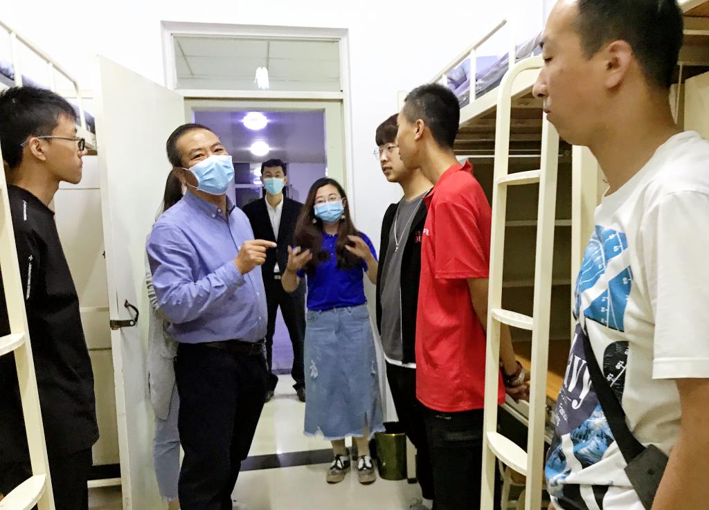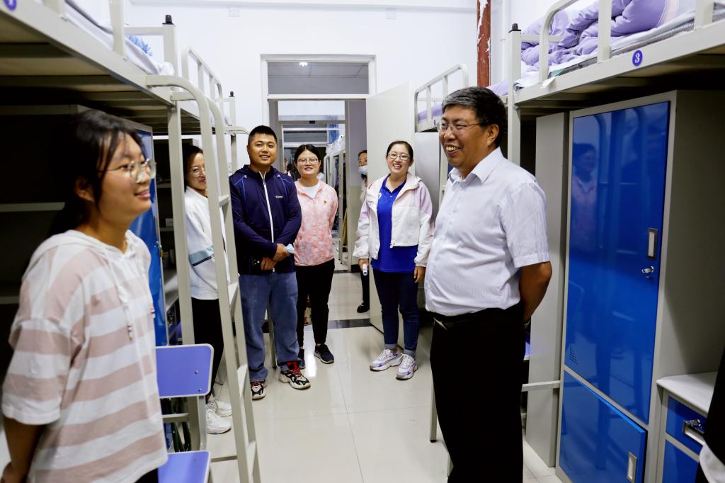 9月15日晚7点,我校2021级新生报到工作已经顺利落下帷幕,校领导分别前往文涛苑、文澜苑、文鸿苑、文翰苑宿舍楼,走访慰问2021级新生。