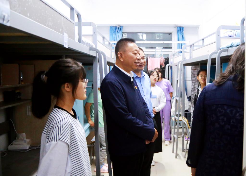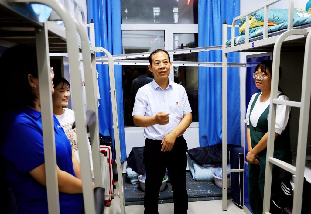 “你是哪里人?新到学校吃住习惯吗?有什么困难?最近天气转冷,大家要多加衣物……”每到一个宿舍,校领导都会仔细查看学生们的生活环境,详细询问大家的入校生活情况,嘱咐同学们无论是学习上还是生活上中遇到困难和问题,都可以第一时间向学校和辅导员沟通。