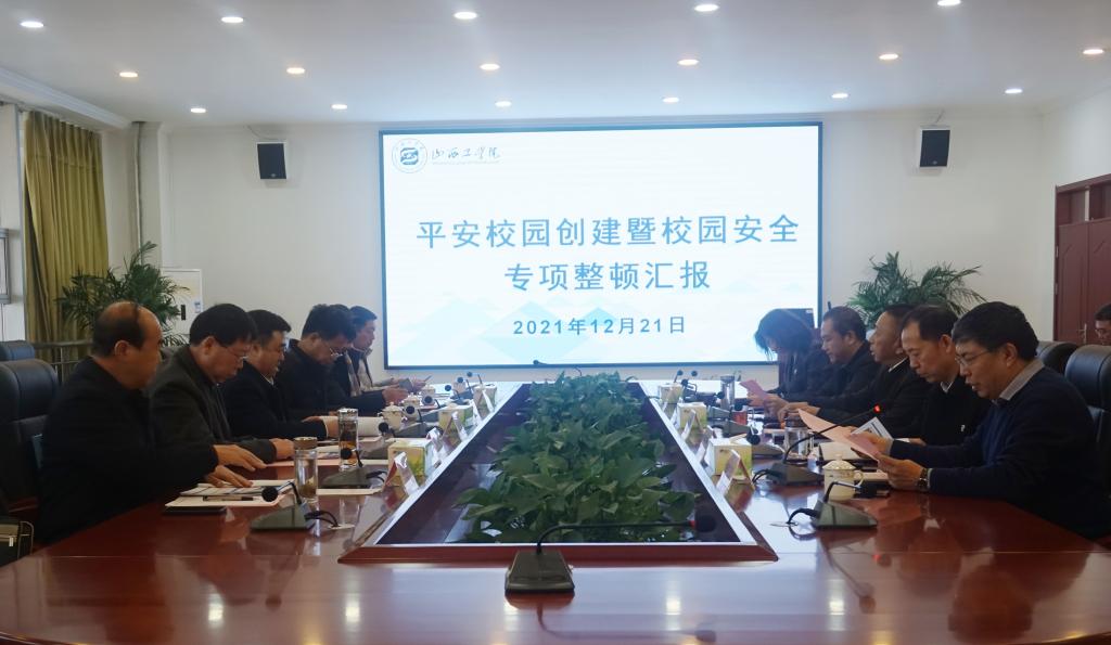 校党委书记树学峰围绕学校意识形态、思想政治工作、实验室安全管理、食品安全管理等方面向检查组做了介绍。郝根彦对学校开展省级“平安校园”创建与校园安全专项整顿工作情况进行了详细的汇报。