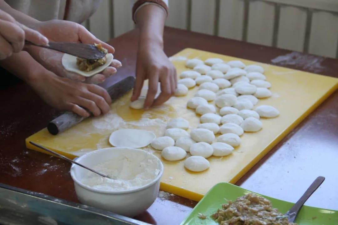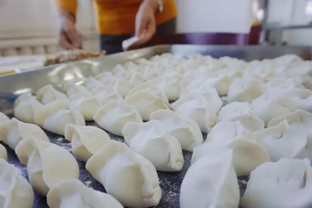 大家熟练地放馅、蘸水、捏边,十指翻飞之间,月牙饺、元宝饺等带有浓浓家乡色彩的饺子一一被“塑造”出来。