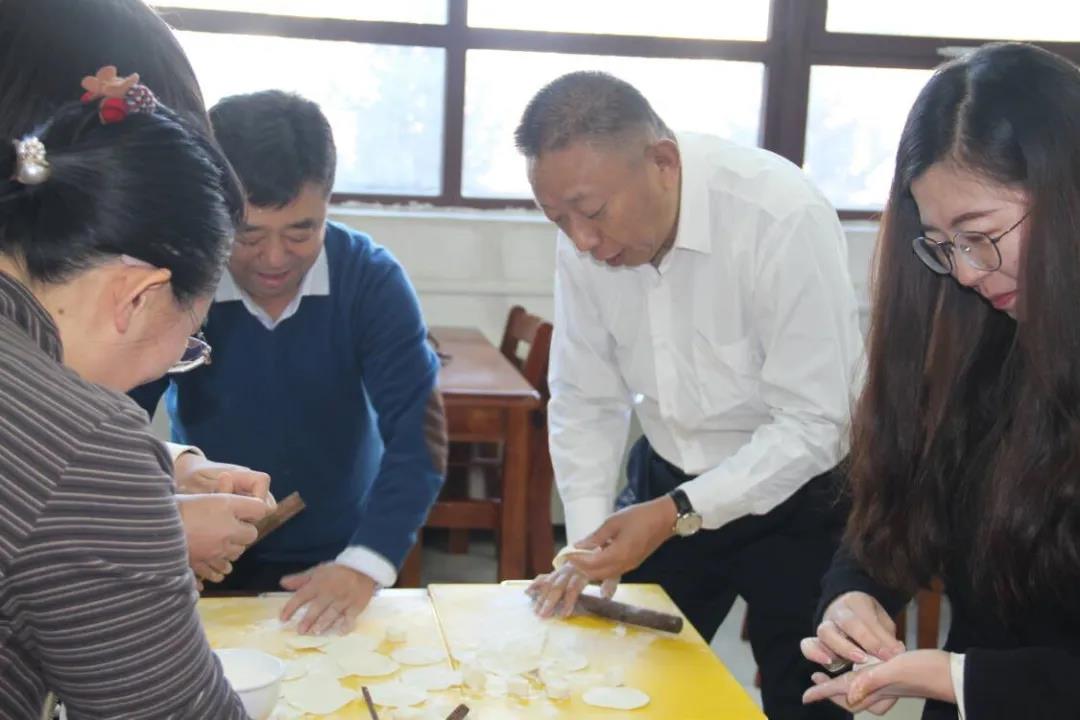 校党委书记树学峰及学校领导热情地参与到活动中来,与老师们一起包饺子,迎冬至。
