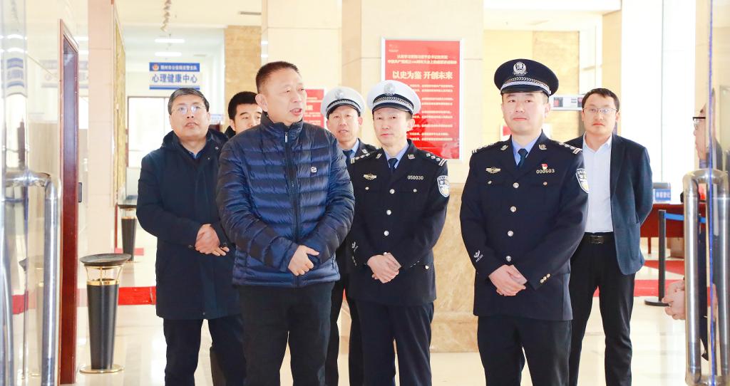 在市交警支队,树学峰代表全校师生员工向交警部门长期以来对学校交通安全工作的大力支持和帮助表示感谢,并为交警支队送上了锦旗和慰问品,祝愿大家在新的一年里工作顺利,平安健康,新春快乐。他希望今后双方持续深化校警合作机制,加强学习交流,围绕深入开展校园交通安全等方面工作进行研讨合作,进一步强化校园交通安全宣传和专项整治,营造良好的校园交通安全环境。市交警支队队长李磊介绍了交警支队的组织架构、工作职责和办案流程,并陪同走访人员参观了交警支队心理健康中心、骑警大队、办案中心和指挥中心。交警支队一大队队长高进宏表示,维护校园周边的道路安全是交警部门的责任,今后将继续与yh86银河国际保持紧密的警民关系,共同携手,为巩固平安稳定的校园周边交通环境贡献更大力量。