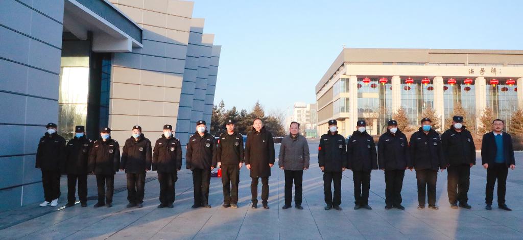 在学校值班室,树学峰详细询问假期值班情况,对大家坚守岗位、默默奉献的精神给予肯定,并要求全体值班人员加强应急值守,确保春节期间全校各项工作信息畅通、正常运行。在门卫岗,树学峰对保卫人员长期以来对校园安全稳定的坚守和维护表示感谢,要求保卫人员继续有序做好身份行程核查和体温检测,全力守好校园“第一道关”,为校园安全和常态化疫情防控提供坚强保障。在后勤保障部,树学峰详细了解了假期后勤工作内容、项目维修情况及24小时值班情况,肯定大家为我校后勤平稳运行作出的积极贡献,勉励大家在新的一年里,继续发扬能吃苦、能战斗、能奉献的精神,进一步强化服务意识、提高服务质量,为全校师生员工提供更优质的后勤保障服务。