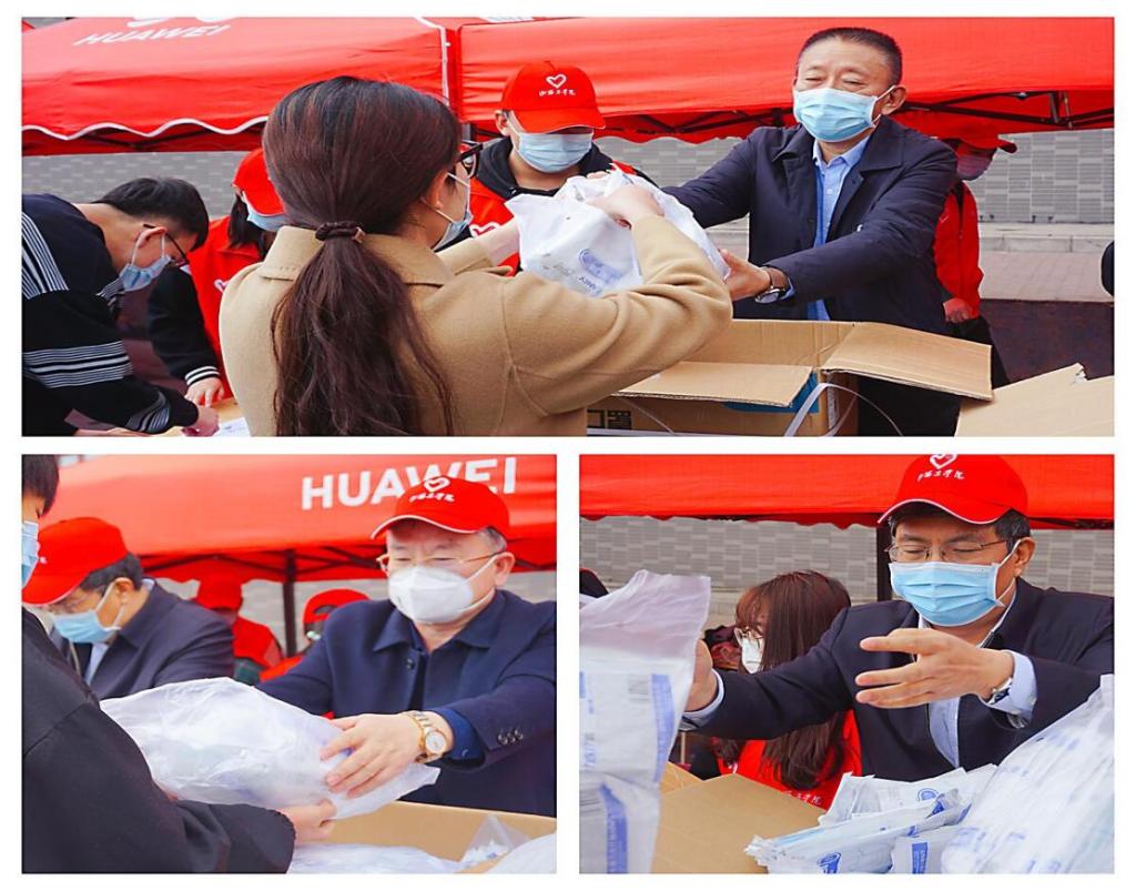 为落实校园疫情防控各项要求,进一步做好常态化疫情防控工作,筑牢校园疫情防控安全防线,保证学生正常的学习生活,4月18日,校党委书记树学峰、副书记刘瑞贤、副校长郝根彦一行在操场为学生免费发放防疫口罩,为学生送去贴心关怀,坚定学生打赢疫情防控战役的信心。