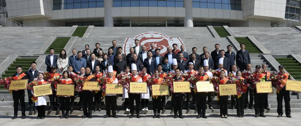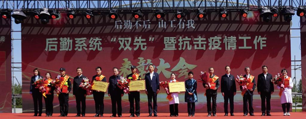 在庄严的奏唱国歌仪式后,大会正式开始。副校长郝根彦首先宣布了《关于表彰后勤系统“双先”暨抗击疫情先进的决定》及表彰名单。而后,校领导对后勤系统10组“先进小组”、10名“先进个人”及防疫抗疫中的3组“先进集体”、5名“先进个人”依次进行表彰,并合影留念。学生代表献花致敬。来自物业中心的赵婕作为先进代表进行感言分享。