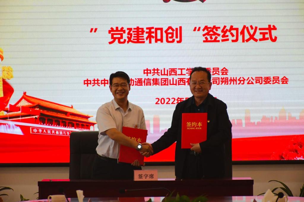 校党委书记树学峰代表学校对山西移动朔州分公司一直以来对学校工作的大力支持表示衷心感谢。他指出,“党建和创”这一党建品牌,在全国范围内已经取得了很好的社会效应。中国移动通信集团有限公司是中央直接管理的国有特大型企业,山西公司及朔州分公司作为隶属公司有着先进的新时代国企党建工作经验。学校自2021年6月3日挂牌成立以来,始终坚持立德树人根本任务,坚持社会主义办学方向,牢记“为党育人、为国育才”使命,将党的领导、党的建设贯穿办学治校全过程,推动学校党建与各项教育事业发展深度融合,初步形成了具有“山工特色”的高校党建工作体系;坚持“立足山西、面向全国、做好朔州的事情”办学理念,聚焦“六新”要求,积极对接区域战略性新兴产业集群,推进校地合作,深入产教融合,以建设现代产业学院为抓手,释放应用研究、科技创新潜力,厚植学校发展根基,全力培养适应社会发展与区域经济需要的“厚基础、强实践、勇创新”具有工程化、智能化、管理化特质及较强学习力、思想力、行动力的高素质应用型人才。此次签约是校企双方密切合作、互惠共赢的一件大事,必将为“以高质量党建促进高质量发展”搭建广阔的平台。学校愿与山西移动朔州分公司一道,在党建共建、和创发展上共同努力,充分发挥学校在党建、人才、智力等方面的优势,在组织体系、人才培养、阵地建设、企业文化等方面进行密切沟通、深化合作,把协议具体内容逐一落到实处,实现精准赋能、资源共享、优势互补、共同发展、合作共赢,切实把党建工作成效转化为业务发展势能,以优异成绩迎接党的二十大胜利召开!
