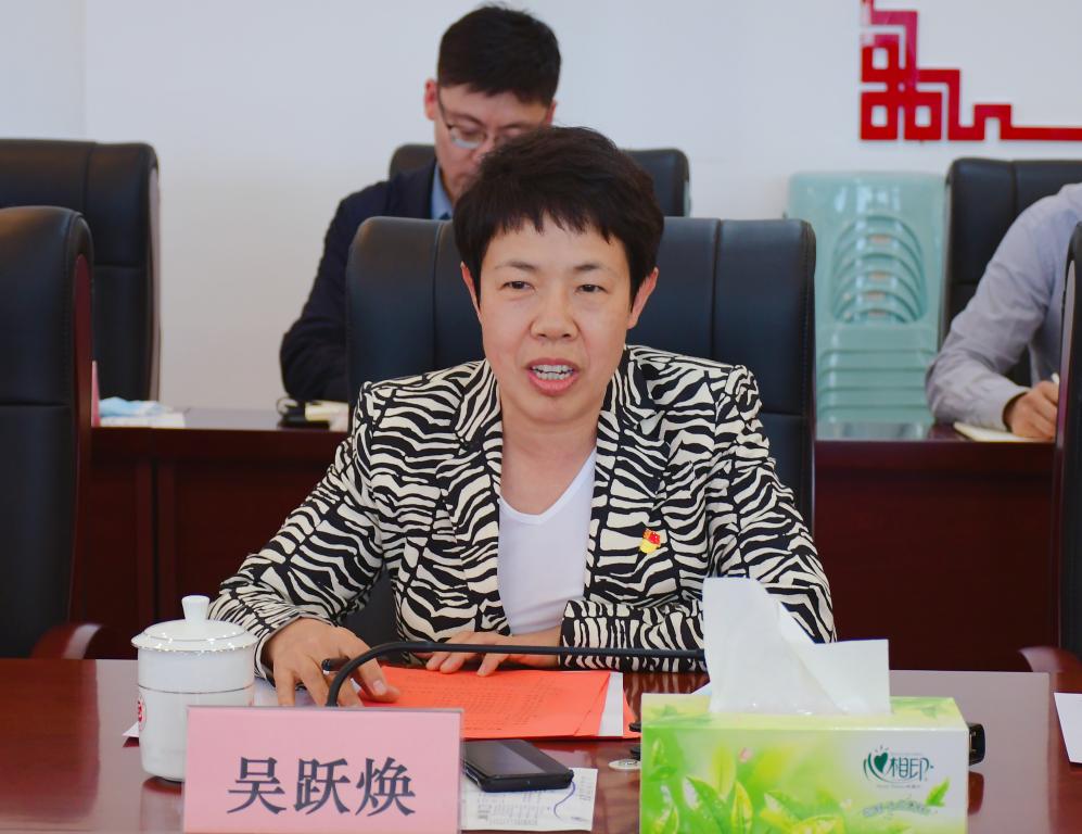 吴跃焕作总结讲话。她指出,本次签约交流,为校企双方“党建和创”活动拉开了序幕,为深入开展学习合作交流搭建了广阔平台。学校要探索建立“党建共建、和创发展”的长效化机制,构建“结对帮带、双向促进、共同提高”的校企党建工作新格局,确保各项措施落实到位、执行有力;深化产教融合,在现代企业治理、大学生创新创业、“互联网+”、信息化建设等方面开展深度合作,激发服务经济社会和创新驱动发展活力,助力区域经济社会高质量发展;围绕“迎接和学习宣传贯彻党的二十大”这一工作主线,推动党的建设与业务发展互促互进,达到教育党员、服务群众、凝聚人心、合作共赢的目标要求。