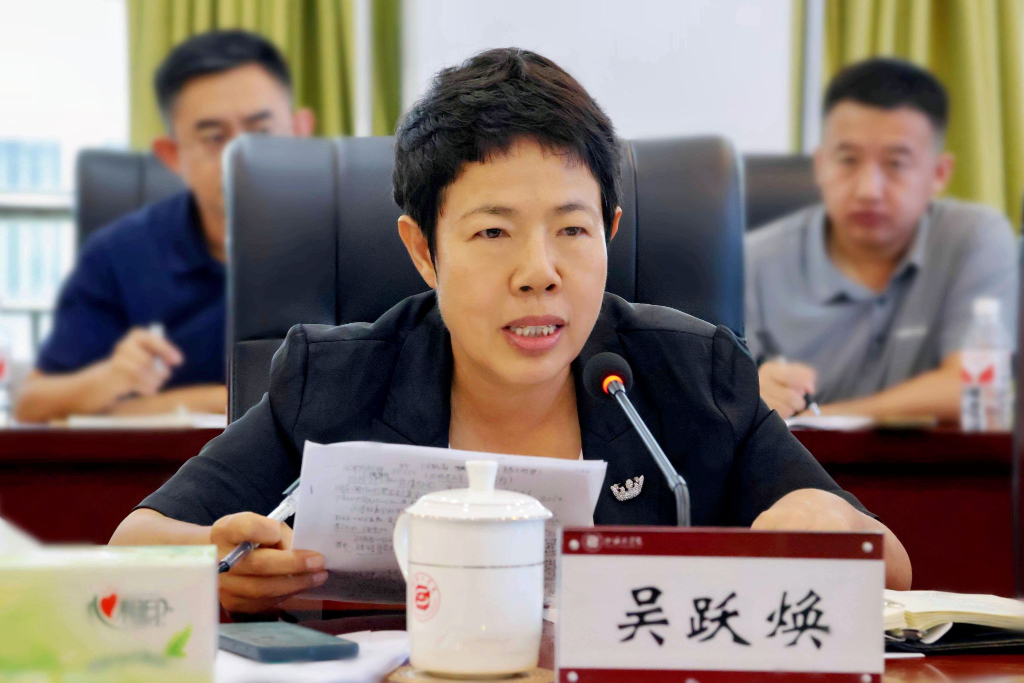 吴跃焕作总结讲话。她强调,全校上下要抓好本次会议精神的传达落实,做到研判形势、把好方位。进一步深刻领会“高质量发展是新时代的硬道理”和“发展新质生产力是推动高质量发展的内在要求和重要着力点”重要论断的理论意义、实践意义和时代意义,坚持“人才培养是根本”“科研创新是关键”“学科布局是牵引”“治理基础是保障”,积极探索、发挥作为高校在教育科技人才一体改革中应有的引领作用,积极培育发展新质生产力,服务高质量发展。做到突出重点、一体推进。要善于抓重点,进一步抓好党的二十届三中全会精神和省委十二届八次全会精神的学习贯彻,用学习的热度带动工作的温度、深度;抓好“未巡先改”,将其作为硬任务,作为推动学校全面从严治党向纵深发展、加快高质量发展的重要抓手;抓好“1+10”专项行动的深入推进,持续完善方案,改进评价机制,常态化全力推进改革创新,一体推进学校治理体系和治理能力现代化。做到凝心聚力、务实笃行。“跳出山工看山工”,充分发挥基层党组织战斗堡垒和党员干部先锋模范作用,进一步解放思想、统筹聚力,拒绝躺平、矢志奋斗,增强忧患意识,坚持底线思维,对标教育家精神,提振精气神,提升育人能力,持续打造风清气正的干事创业氛围和踏实肯干、用心用情用力服务育人的校园文化氛围,推动学校各项工作取得硕果、再创佳绩,奏响yh86银河国际在教育强国建设新征程上的时代强音。