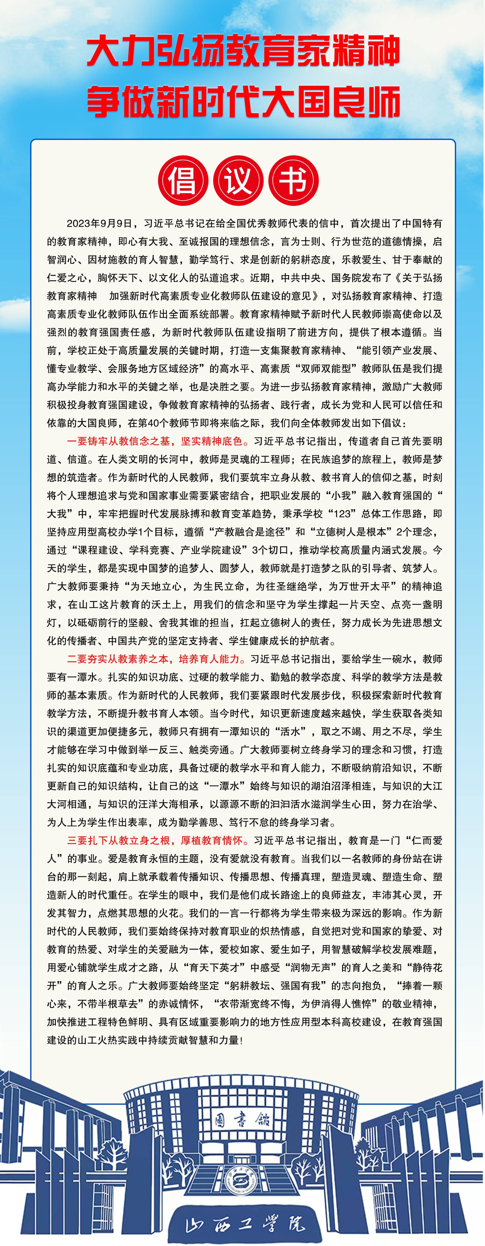 关于“大力弘扬教育家精神 争做新时代大国良师”的倡议书