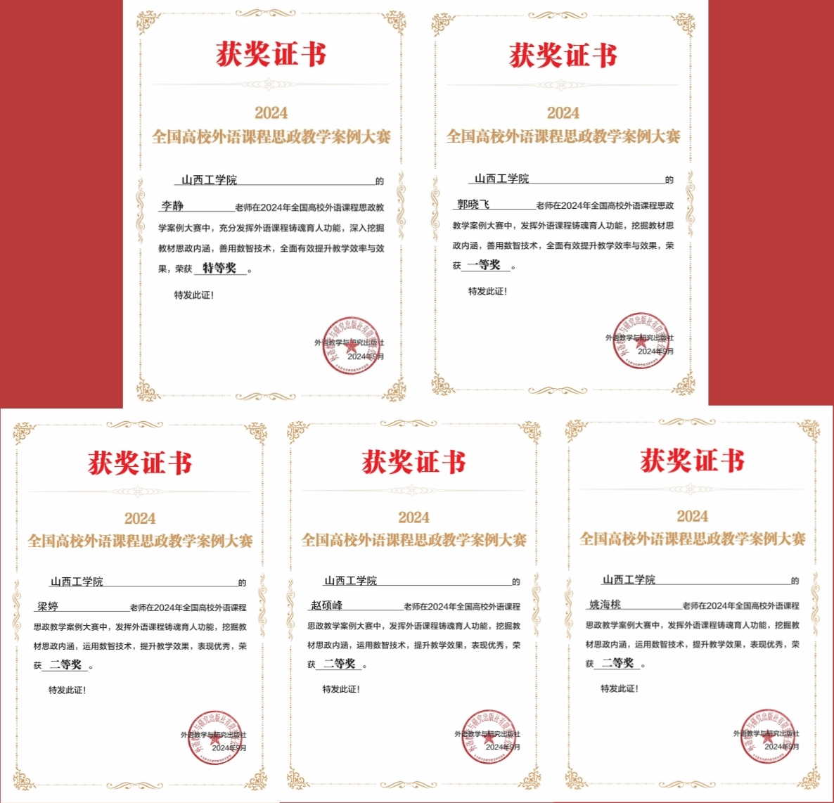 近日,全国高校外语课程思政教学案例大赛落下帷幕。我校教师团队紧扣思政主题,深入挖掘教材育人元素,经过数月的精心筹备与激烈竞争,凭借出色的教学设计和深厚的思政教育功底在大赛中脱颖而出。其中,李静老师荣获主赛道特等奖,为全省唯一的特等奖项;郭晓飞老师荣获一等奖;梁婷、赵硕峰、姚海桃三位老师荣获二等奖。成绩的取得,不仅是对我校青年老师教学能力的认可,更是对我校以外语课程为代表的课程思政教学实力的高度肯定,也是我校长期以来坚持思政教育高质量建设、扎实落实立德树人根本任务的生动体现。
