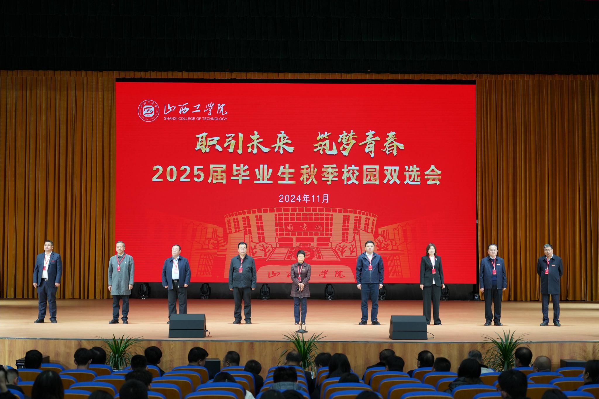 11月6日上午,我校2025届毕业生秋季校园双选会启动仪式在问道会堂举行。朔州市就业创业服务中心主任李东海,朔州师范高等专科学校党委副书记、校长朱少英,朔州职业技术学院党委副书记、院长吴淑琴,朔州陶瓷职业技术学院党委委员、副院长田晓宁,我校校长吴跃焕,校党委副书记刘瑞贤、孙刚,副校长田忠刚、郝根彦出席仪式,各职能部门负责人,各二级学院党总支党务负责人、院长、组织员、辅导员和2025届毕业生代表参加仪式。