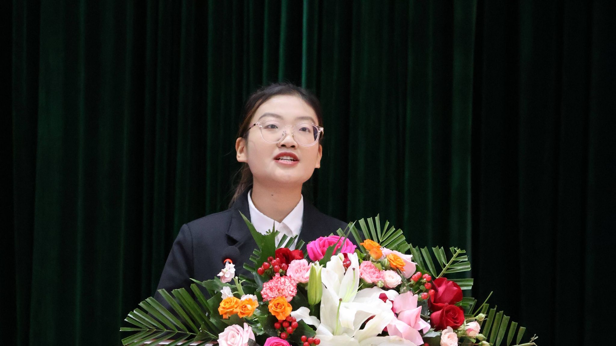 材料工程学院李佳同学作为毕业生代表上台发言。她表示,要树立正确的就业观念,保持良好的就业心态,将自己的所学运用到实践中,充分发挥个人积极性和创造性,并祝愿全体毕业生找到理想工作,实现人生价值。