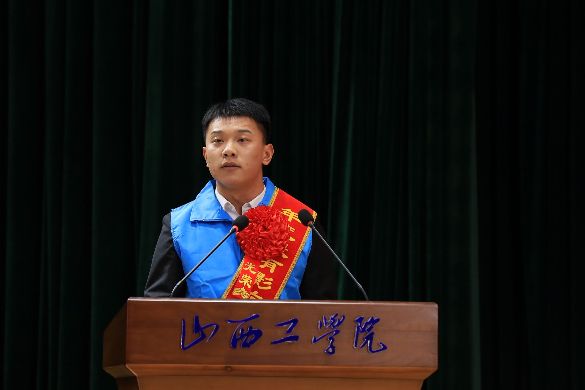 “年度最有影响力志愿人物”代表候富国同学代表志愿者发言。他回顾了自己一年来的志愿服务经历,并分享了心得感悟。他谈到,志愿服务是一份“助人助己”的工作,自己所做的志愿服务只是众多奉献行动中的小小一部分,但无数青年在不同的地方,以不同的方式发光发热,那汇聚起来的力量必将为中国式现代化建设添上浓墨重彩的一笔。