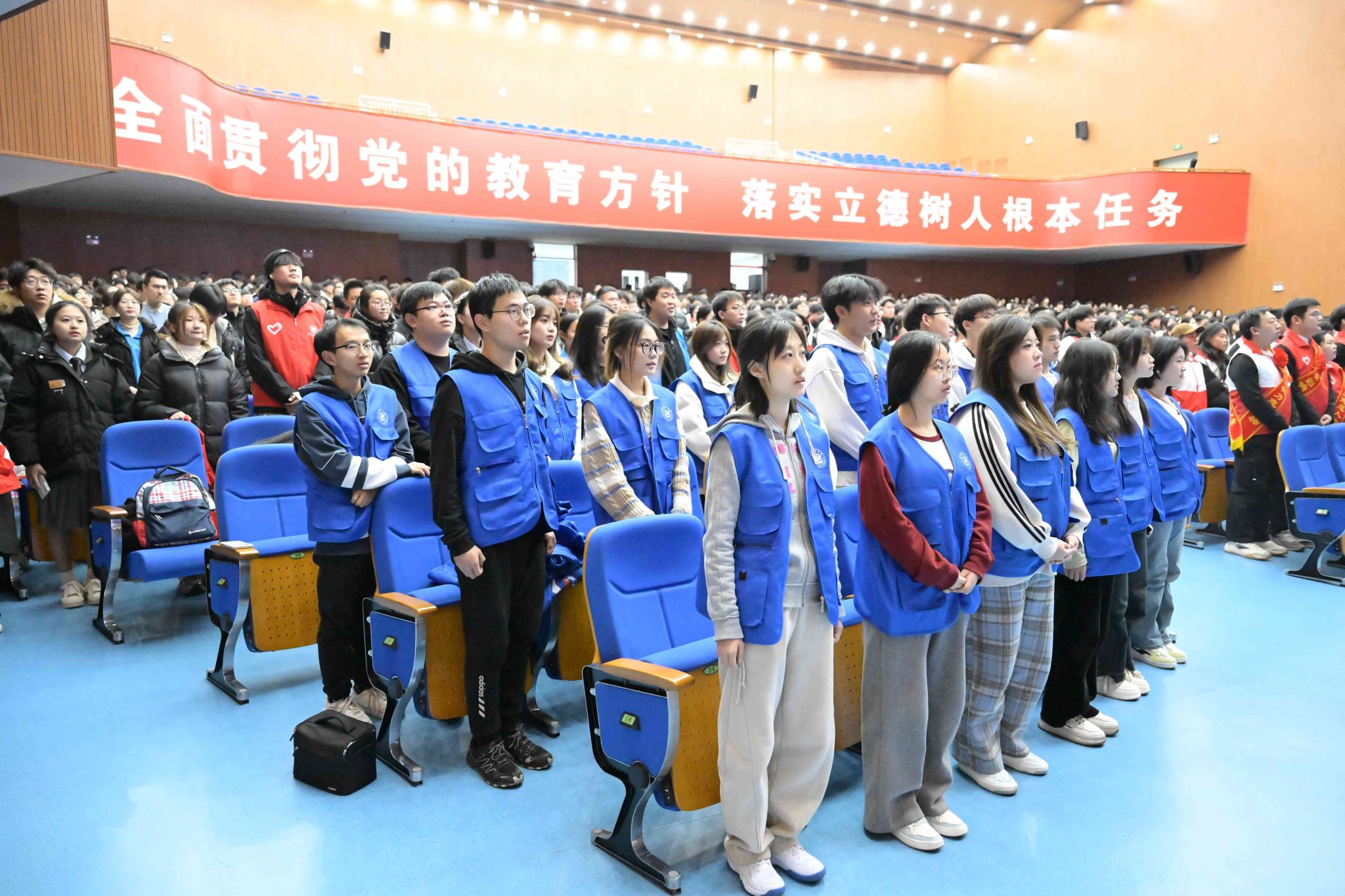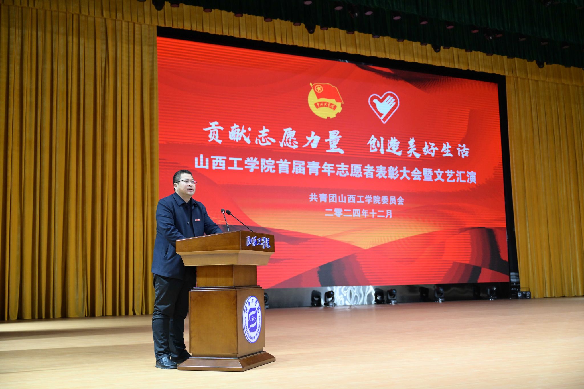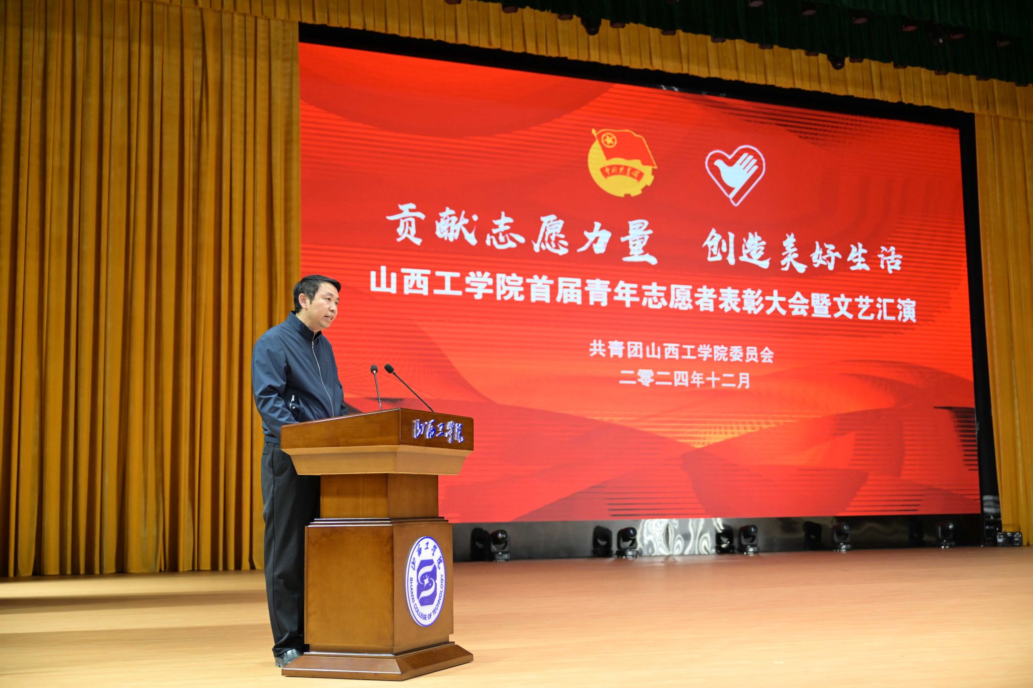 在第39个国际志愿者日到来之际,为深入贯彻落实习近平总书记关于志愿服务重要指示精神,持续深化新时代文明实践精神,大力弘扬“奉献、友爱、互助、进步”的志愿服务精神,引导广大志愿者培育和践行社会主义核心价值观,发挥志愿服务先进典型示范作用,全力推动我校青年志愿服务事业高质量发展,我校于12月5日晚在问道会堂举行首届青年志愿服务工作表彰大会暨文艺汇演,校党委副书记孙刚出席大会,各二级学院党总支党务负责人、院长,组织员、辅导员、班主任以及校院两级学生会成员、班团学生干部和青年志愿者代表参加本次大会。