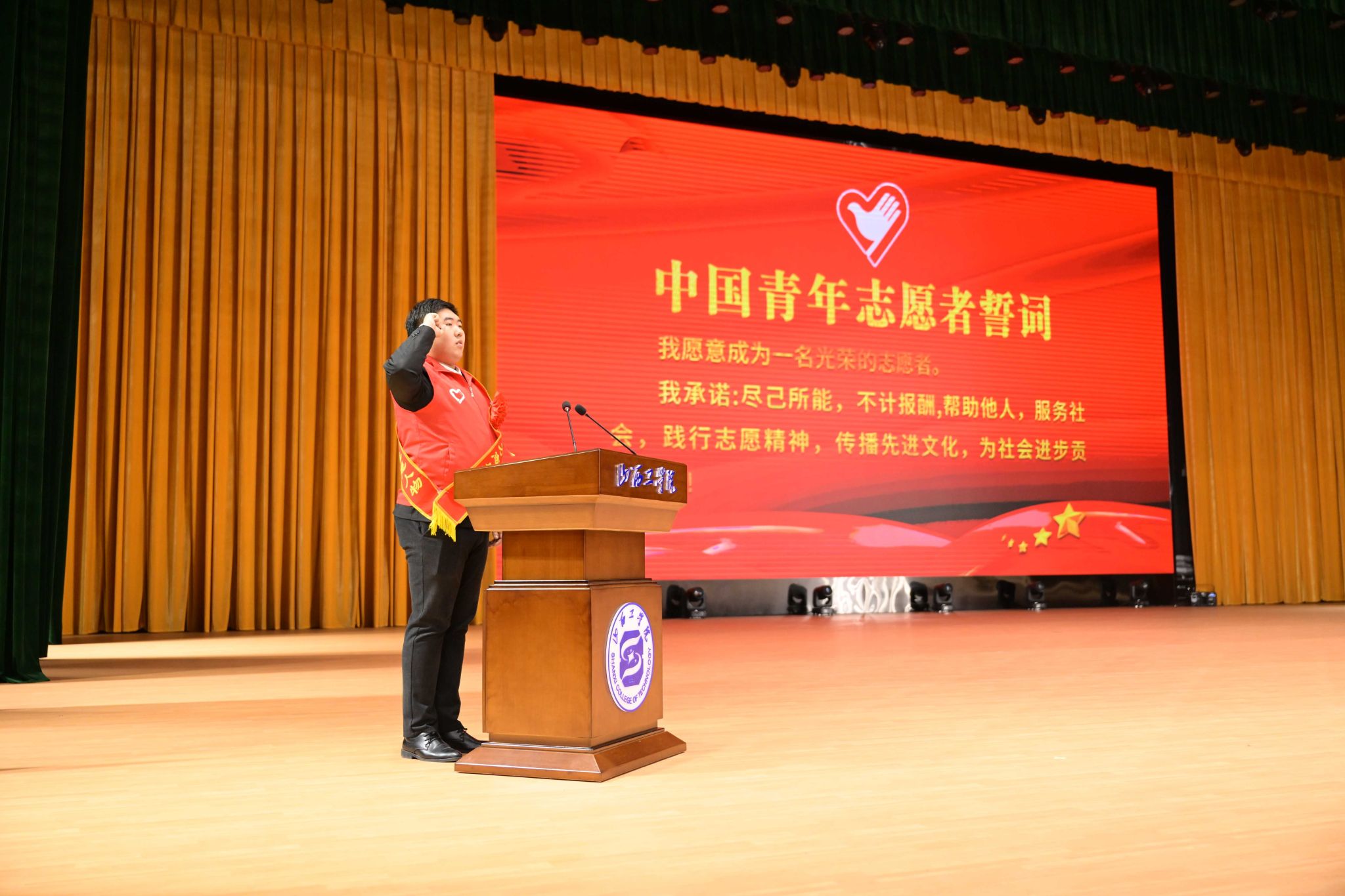 在志愿者代表荆杰的带领下,全体志愿者集体宣誓,他们用自信而豪迈的声音,喊出铿锵有力的誓言,展现了我校青年志愿者朝气蓬勃、昂扬向上的精神面貌。