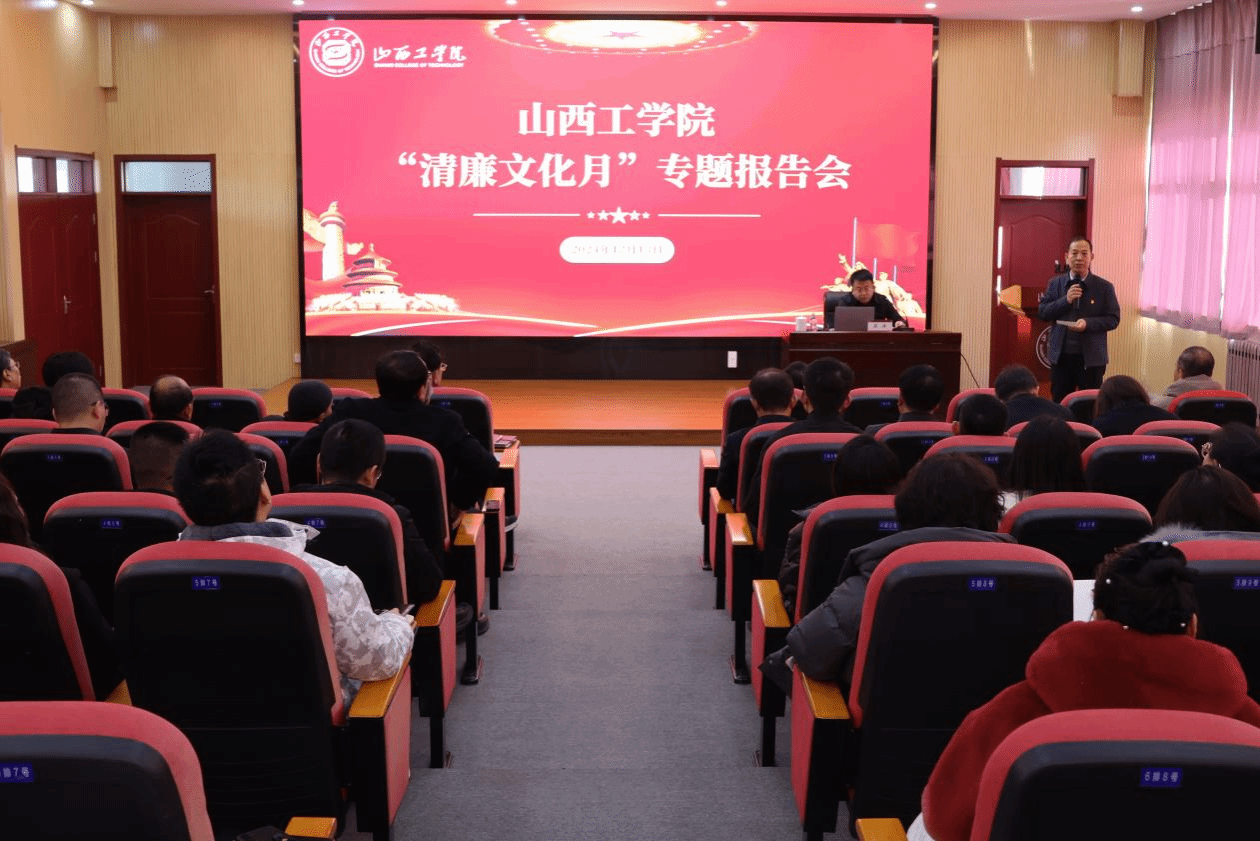 为认真落实党中央和省委关于加强新时代廉洁文化建设的部署要求,进一步巩固深化党纪学习教育成果,强化和改进党员干部纪律作风建设,推动全面从严治党向纵深发展、向基层延伸。12月13日上午,我校在知行楼四层学术报告厅举办“清廉文化月”专题报告会。学校特邀朔州市纪委监委第三监督检查室主任吴洋作题为“深入学习习近平总书记关于教育工作的重要论述,扎实推进高校党风廉政建设和反腐败工作高质量发展”的专题报告。校长吴跃焕,校党委副书记刘瑞贤、孙刚,校纪委书记贾俊敏,副校长田忠刚、郝根彦出席报告会。各职能部门负责人、各二级学院院长/党务临时负责人、全体职能部门人员、各二级学院管理岗人员及教师代表参加报告会。报告会由贾俊敏主持。
