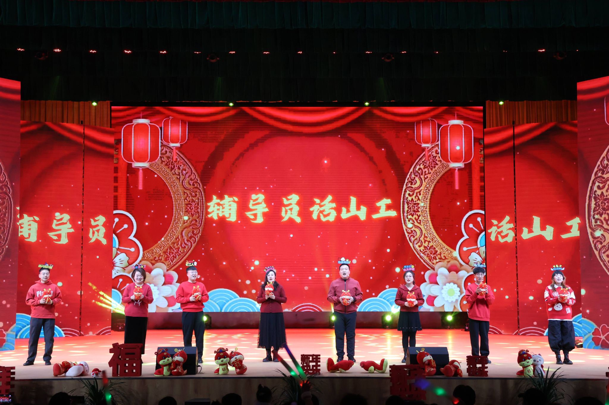 三句半表演《辅导员话山工》妙语连珠,辅导员们用简短精炼的话语,畅谈学校发展成就,描绘未来美好蓝图,用一声声祝福,一句句问候,将新年的祝福与愿望传递到每一位山工人的内心深处。