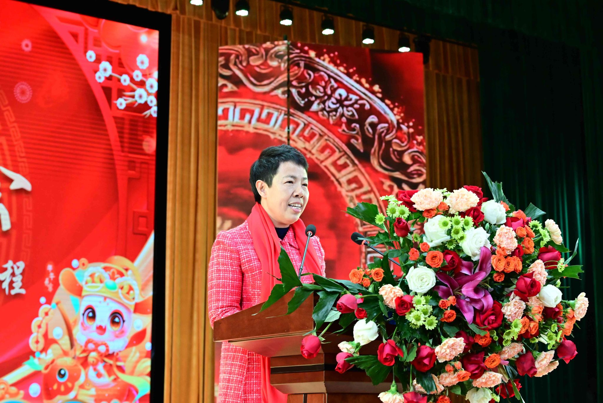 吴跃焕致新年贺词。她首先代表学校党委和行政,向在立德树人岗位上辛勤耕耘的全体教职员工,向在浩瀚学海中奋楫扬帆的青年学子,向长期以来一直关心支持学校事业发展的各级领导、各位同仁和社会各界的朋友们,致以衷心的感谢和新年最美好的祝福。她指出,2024年,全体山工人在习近平新时代中国特色社会主义思想指引下,深入落实立德树人根本任务,牢固树立以学生为中心理念,用斗志锚定目标,用定力迎接挑战,心怀“党之大计”,胸怀“国之大者”,执实干之笔、挥拼搏之墨,共同绘就了学校高质量发展的壮美画卷。这一年,我们砥砺前行,感恩奋进更加自信笃定。全校上下深入学习贯彻党的二十届三中全会精神,扎实开展党纪学习教育,把党的创新理论转化为坚定理想、锤炼党性和指导实践、推动工作的强大力量,踔厉奋发、勇毅前行,奋力答好“强国建设,山工何为”的时代课题。这一年,我们凝心聚力,发展目标更加清晰明确。我校坚持“一个目标二个遵循三个切口”的“123”工作思路,明确以政治建设领航行动为引领的“1+10”个重点行动,努力跑出高质量发展的“加速度”。这一年,我们真抓实干,干事创业更加强劲有力。我们持续调动积极性,提振工作精气神,努力形成解放思想善谋事、发扬斗争精神敢干事、增强专业能力会做事、改进工作作风能成事的氛围。她强调,新的一年,学校要始终坚持以习近平新时代中国特色社会主义思想为指导,坚定不移走改革之路、兴实干之风、显奋进之为,把脚步印在学校的各个角落,把感情融入师生的日常作息,以更加饱满的热情,更加昂扬的斗志,共同谱写学校高质量发展新篇章!