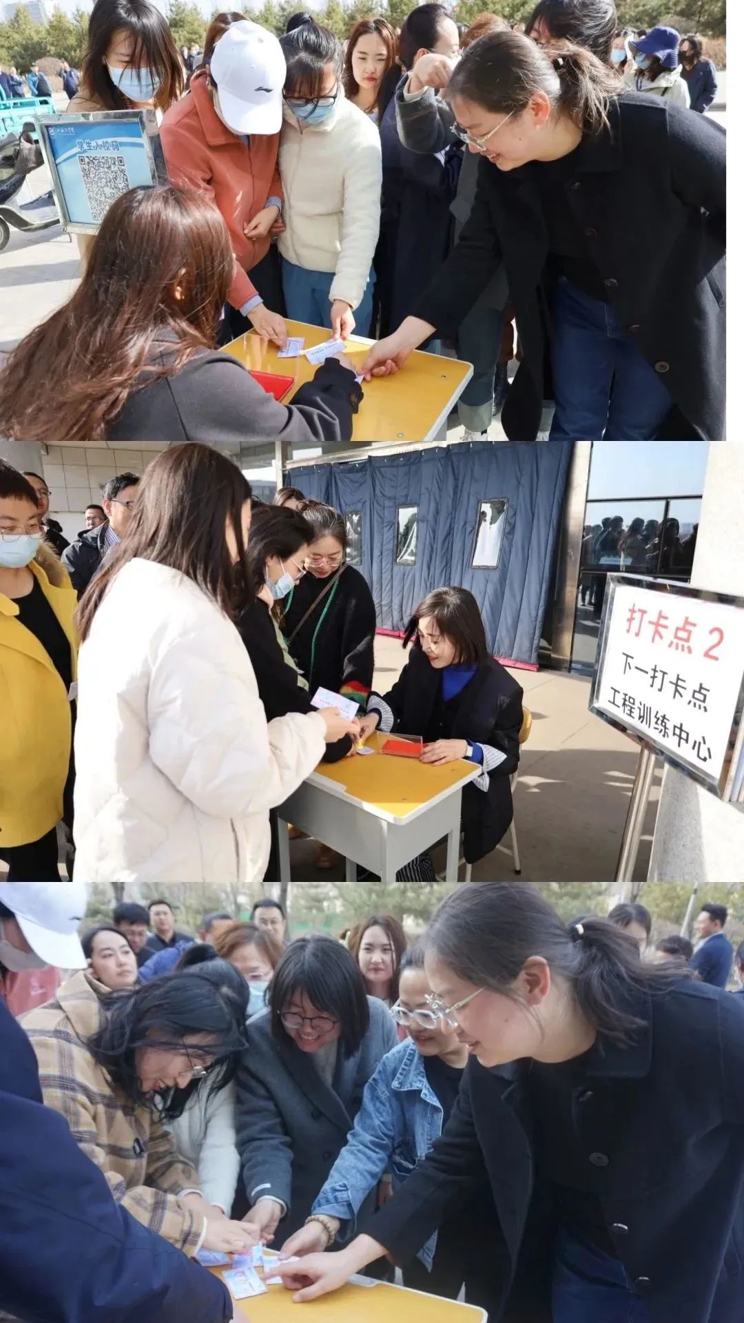 健步走活动中,教职工们从治学楼出发,迎着午后的暖阳,绕着初春的校园,分别到西区教职工餐厅、图书馆、东区工程训练中心三个指定位置打卡。一路上欢声笑语、朝气蓬勃,大家眼中有光、心中有梦,展现出了山工人笃行不怠,奋楫争先的精神风貌。