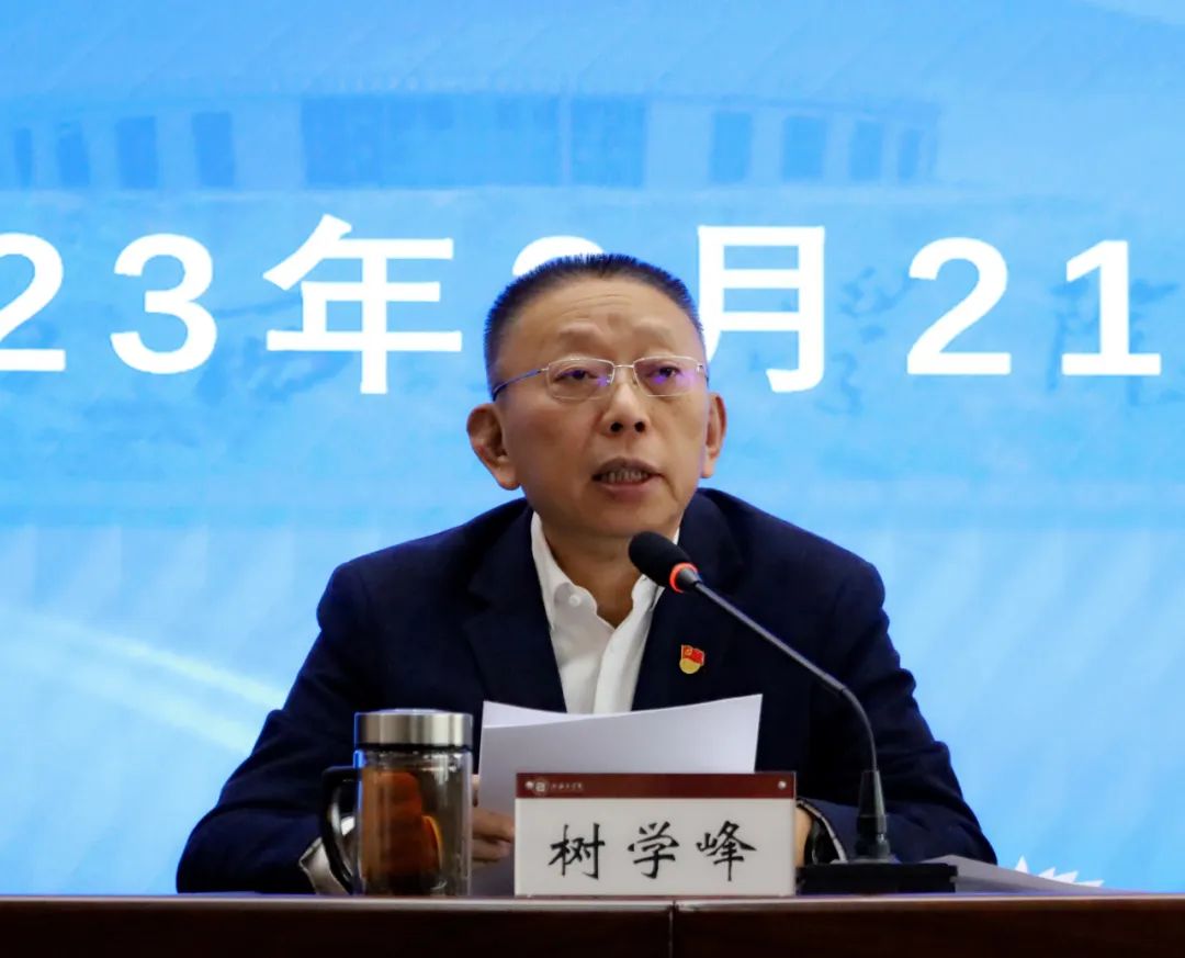 校党委书记树学峰以“奋楫争先,狠抓落实,加快推进应用型本科高校建设”为题作工作报告,他指出建校以来,学校坚持立德树人根本任务,认真贯彻落实习近平总书记考察调研山西重要讲话重要指示精神以及关于教育的重要论述,深入学习贯彻党的二十大精神,坚持稳中求进工作总基调,以党建引领促发展,统筹推进学校各项事业高质量发展。他从政治建设、理论学习、党风廉政、意识形态、干部人才、顶层设计、“三全育人”、产教融合、服务保障等层面对学校2022年工作进行了回顾总结,同时部署2023年重点工作。