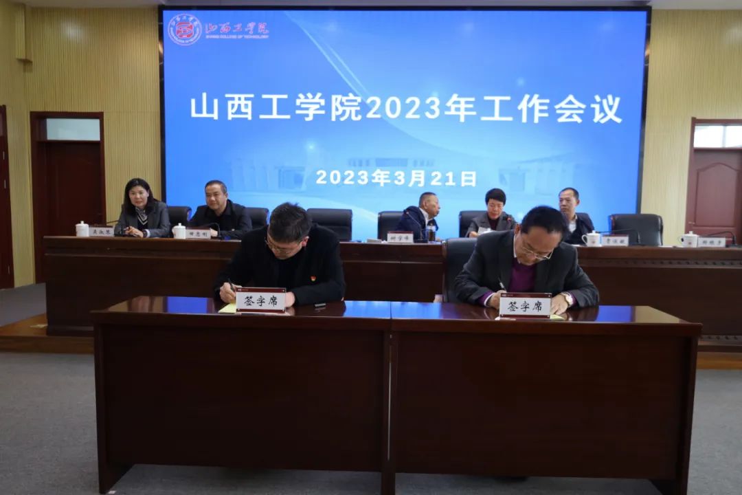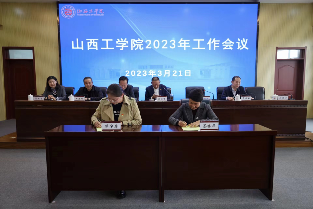 会议进行了《工作目标责任书》的签订仪式。校长吴跃焕与审计与发展规划部临时负责人,党委副书记刘瑞贤与党委工作部临时负责人分别签订了目标责任书。其它二级单位的目标责任书由审计与发展规划部会后组织签订。