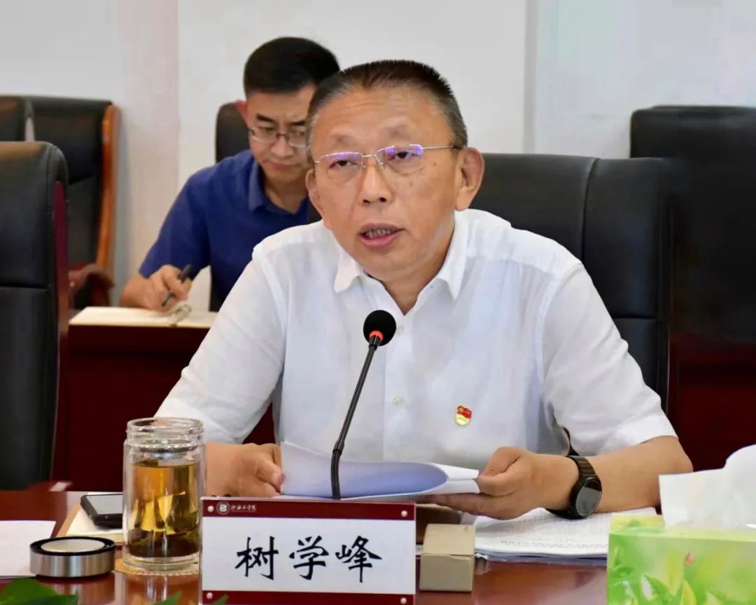 会前,树学峰代表学校党委作学习贯彻习近平新时代中国特色社会主义思想主题教育理论学习情况汇报。