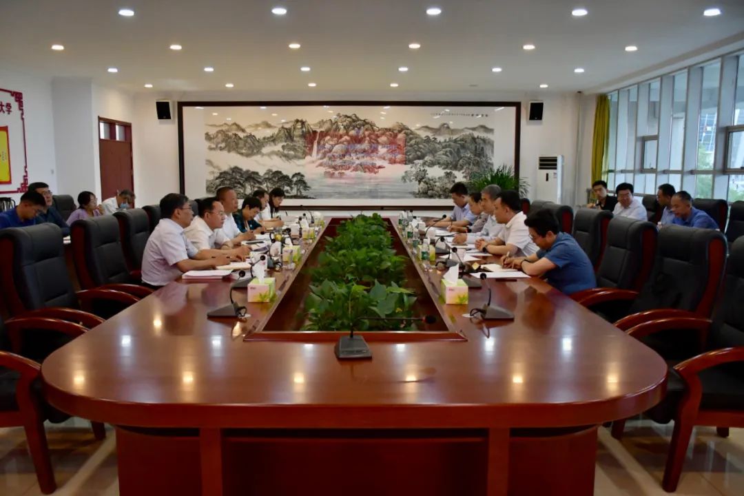 6月6日下午,我校在治学楼第一会议室召开2023年第四次党委理论学习中心组学习(扩大)会议,就学习贯彻习近平新时代中国特色社会主义思想主题教育进行专题学习研讨。省委第28巡回指导组组长李思殿等一行5人参会指导。校党委书记树学峰主持会议并作主题发言。全体在校领导出席会议,各职能部门临时负责人、各二级学院院长及党务临时负责人列席会议。