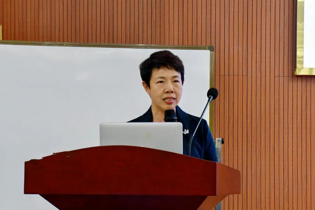 吴跃焕作总结讲话。她代表学校对董川教授的精彩报告表示衷心感谢,欢迎董教授今后常来我校开展学术交流。她指出,董教授用诙谐幽默的语言带领大家走进了神奇的化学殿堂、领略了化学的神奇魅力。这是既是课程思政的鲜活典范,也是自然科学与人文科学的精彩融合。董教授运用大量生动的事例向大家深刻阐释了化学、材料化学、材料科学与工程专业与人们的生活之间的关系,对国家未来发展的重大作用,让大家真切感受到科技创新的伟力。她希望广大师生既能仰望星空,志当高远,以实现中华民族伟大复兴为己任;同时也能脚踏实地,做好学问,不断增强学习的主动性、创造性,强化自身专业能力,学以致用、学以报国,让青春在火热实践中绽放绚丽之花。