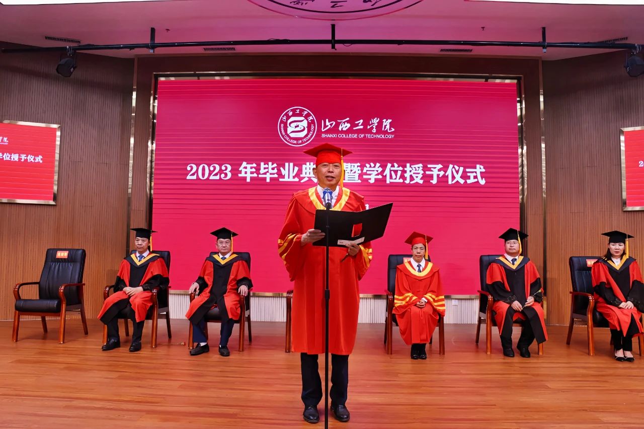 骊歌唱响,青春远航,心怀炽热,奔赴山海。6月13日上午,我校在图书馆1号报告厅举行2023届学生毕业典礼暨学位授予仪式。校党委书记树学峰、校长吴跃焕、校党委副书记刘瑞贤、孙刚、校纪委书记贾俊敏、副校长郝根彦、吴淑琴出席毕业典礼。校学位评定委员会成员、各职能部门临时负责人、各学院院长/党务临时负责人、全体辅导员、毕业班班主任及全体毕业生齐聚一堂。同时还邀请教职工代表、服务保障部门代表及家长代表共同见证2023届毕业生圆满完成学业,开启人生新征程,建功立业新时代。