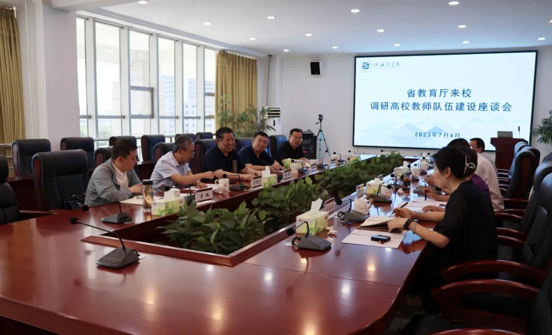 7月4日上午,省委教育工作委员会主持日常工作的副书记(正厅长级)、省教育厅党组成员杨军,省教育厅安稳处副处长李建军,省教育厅教师工作处四级调研员李鹏一行,在朔州市教育局党组书记、市教育工委第一副书记、局长刘国清,朔州市教育工委常务副书记、市教育局党组成员王植的陪同下莅临我校,就高校教师队伍建设工作开展调研并指导工作。我校党委书记树学峰、校长吴跃焕、校党委副书记孙刚、副校长吴淑琴、人力资源部临时负责人陪同调研。