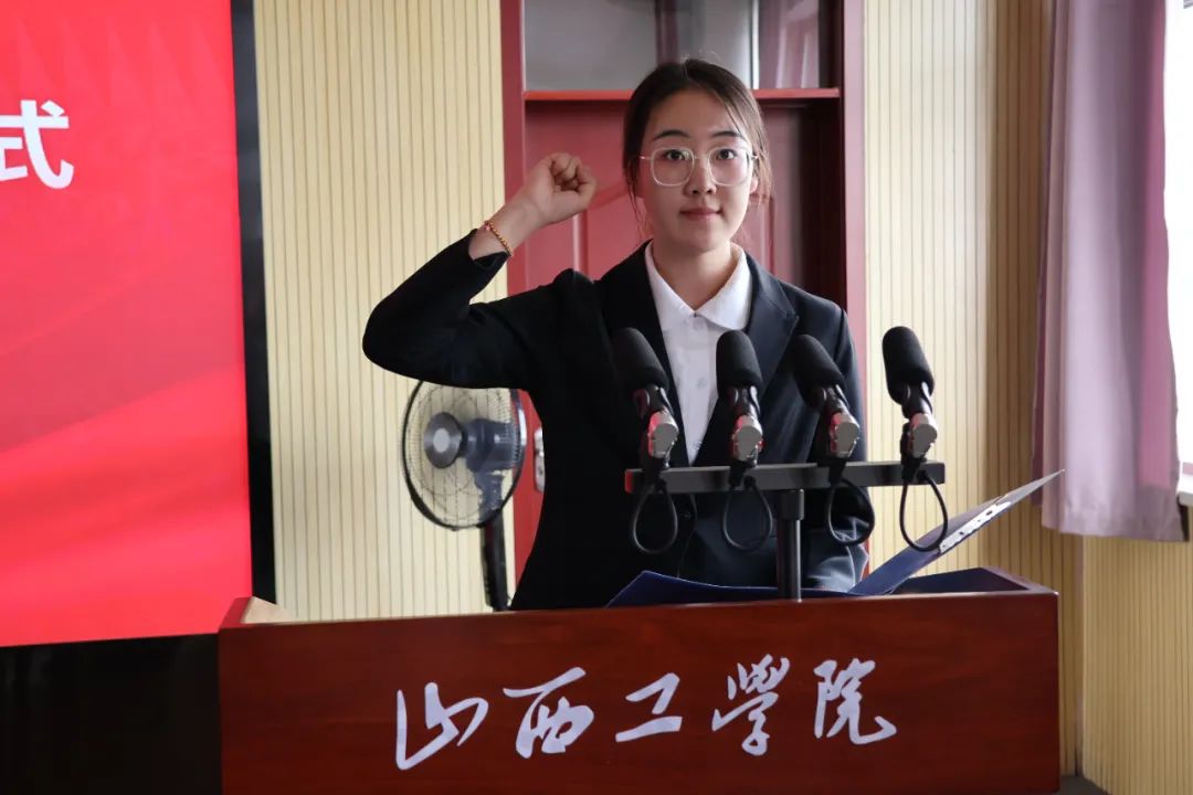 能源产业学院的邢宇琛同学作为社会实践代表带领全体实践队员进行集体宣誓。全体成员庄严宣誓誓词句句肃穆,铿锵有力展现出山工学子昂扬向上的精神面貌与青春活力。