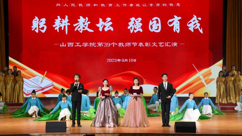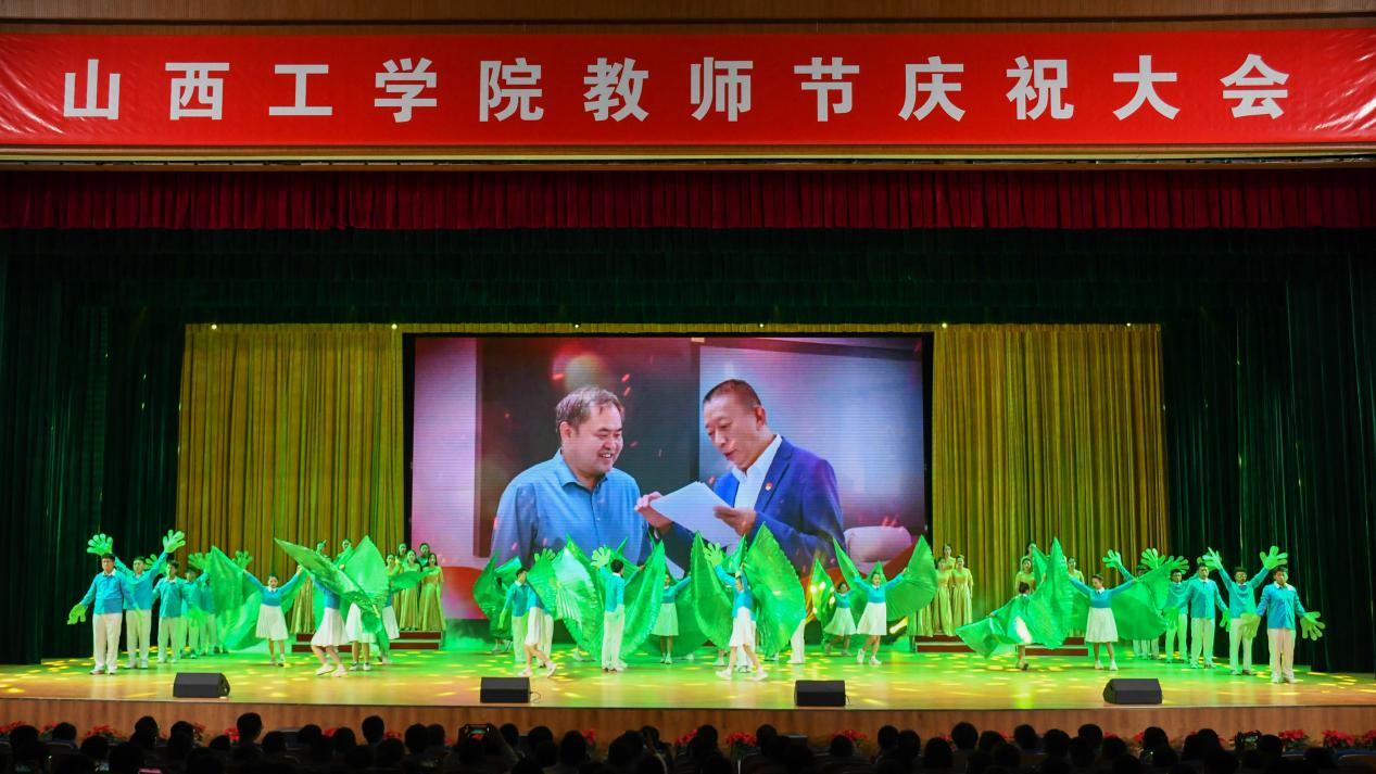 随后,文艺汇演在开场舞《好大一棵树》中拉开帷幕,表演者婆娑起舞,准确传递出了学生对老师的崇敬之情、山工美好明天的祝福以及山工教师教书育人、不计得失、甘于奉献的精神品质;诗朗诵《塞外:机遇与挑战牵手——yh86银河国际礼赞》,礼赞讴歌了学校在地方性应用型本科建设过程中的办学探索实践;情景剧《时间都去哪儿了》,启发学生珍惜光阴,感念师长教育之恩,立志做有用之才;通识教育学院体育俱乐部老师们集体表演《快乐崇拜》健美操,动感十足、活力四射,传导着“健康运动,快乐工作”的美好祝愿;由山工之光合唱团混声合唱《掌声响起来》,讲述着成功背后都有艰辛的磨砺和付出,成绩和荣誉只属于过去,要保持热爱、奔赴山海;最后,晚会在集体合唱《我和我的祖国》中落下帷幕,歌声充分表达了对祖国母亲的无限热爱和愿意为之毕生奉献的豪情壮志,同时将大会现场氛围推向高潮。