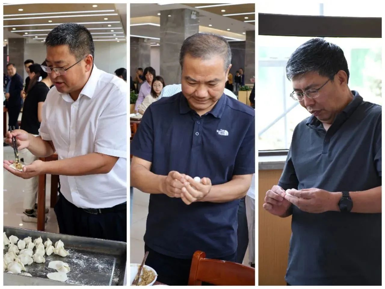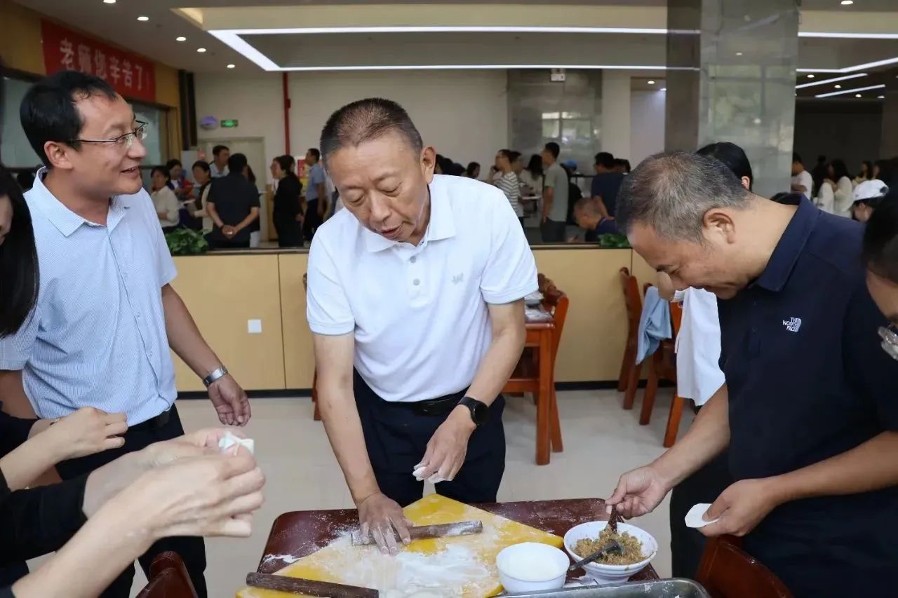 校党委书记树学峰,校长吴跃焕,校党委副书记孙刚,副校长田忠刚、郝根彦亲临现场,热情地参与到活动中来。大家纷纷亮出“绝活”,各显神通,擀饼、包馅、捏边、摆造型,各显身手,忙得不亦乐乎。
