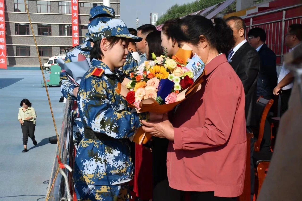 送一束鲜花给父母,感谢父母养育之恩。11名2023级新生代表为11名家长代表们敬献鲜花。