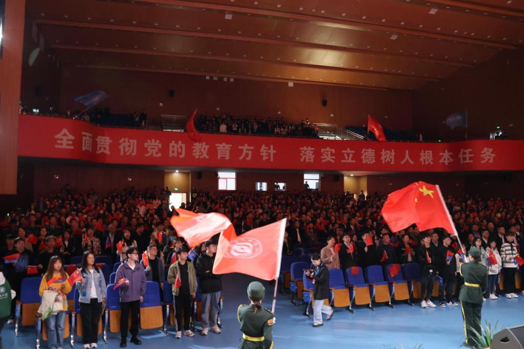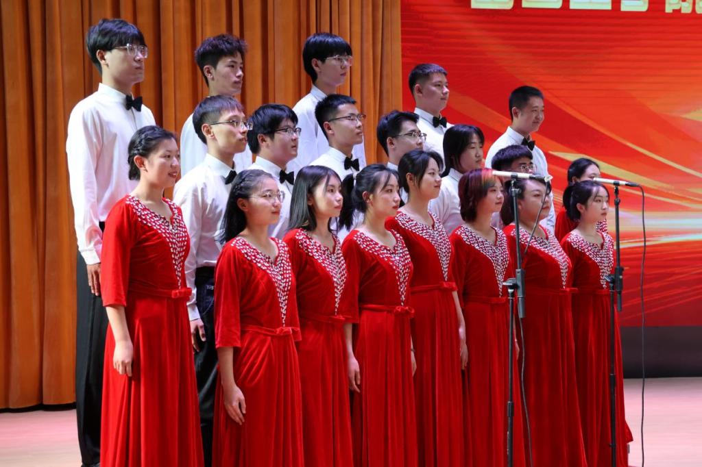 在激昂澎湃的音乐声和热情似火的阵阵掌声中,全场齐唱《歌唱祖国》。朴实的歌词、滚烫的旋律,始终如旗帜,似号角,鼓舞和激励着一代又一代中国人奋勇前进。此刻,心与心相连、情与情共融,大家整齐而嘹亮的歌声、手中挥舞的红旗表达出全场观众爱党爱国爱校的炽热情怀,唱出了不忘初心跟党走,继续为党和国家事业、为学校发展建设贡献力量的坚定决心,将整场音乐会推向了高潮。