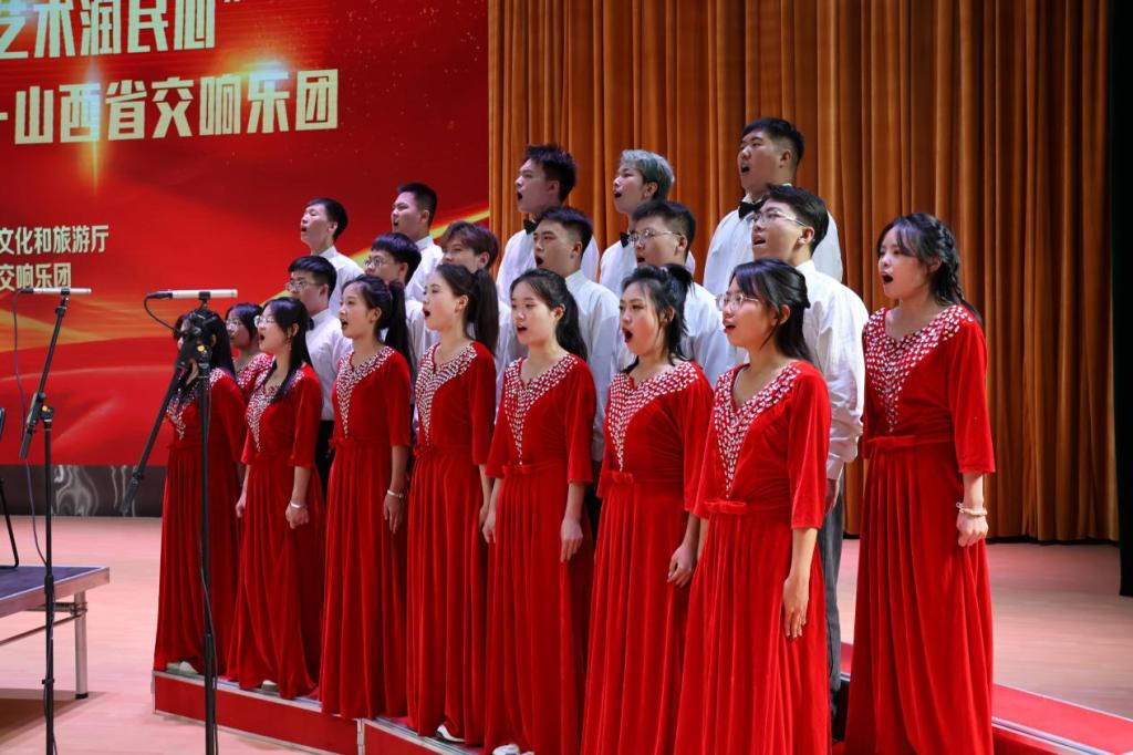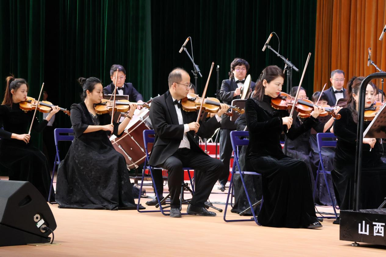 校党委书记树学峰致辞。他首先代表学校对山西省交响乐团各位艺术家朋友的专程到来表示热烈的欢迎,向长期密切关注、支持学校发展的各界嘉宾致以诚挚的谢意,并预祝本次音乐会取得圆满成功。他指出,山西交响乐团送来的高雅艺术演出既是致敬艺术、致敬经典,更是致敬伟大的新时代。在朔州市委、市政府的全力支持下,在朔州市人民的热情拥抱下,yh86银河国际始终坚持社会主义办学方向,全面贯彻党的教育方针,落实立德树人根本任务,坚持“五育并举、融合育人”,抢抓发展机遇、勇挑建设重担,向着省内应用型高校排头兵建设目标高歌猛进,推动教育链、人才链与产业链、创新链有机衔接,通力形成高校、产业和社会发展的“共同体”,两年来学校各项事业取得了蓬勃发展。他期望,通过本次交响音乐会,广大师生能够深刻感受高雅艺术的魅力,体味艺术作品的深刻内涵,进一步坚定理想信念,培养爱国情怀,积极投身区域改革发展火热实践,推动实现更高水平发展共赢,为朔州高质量转型发展更好地贡献山工智慧和力量。