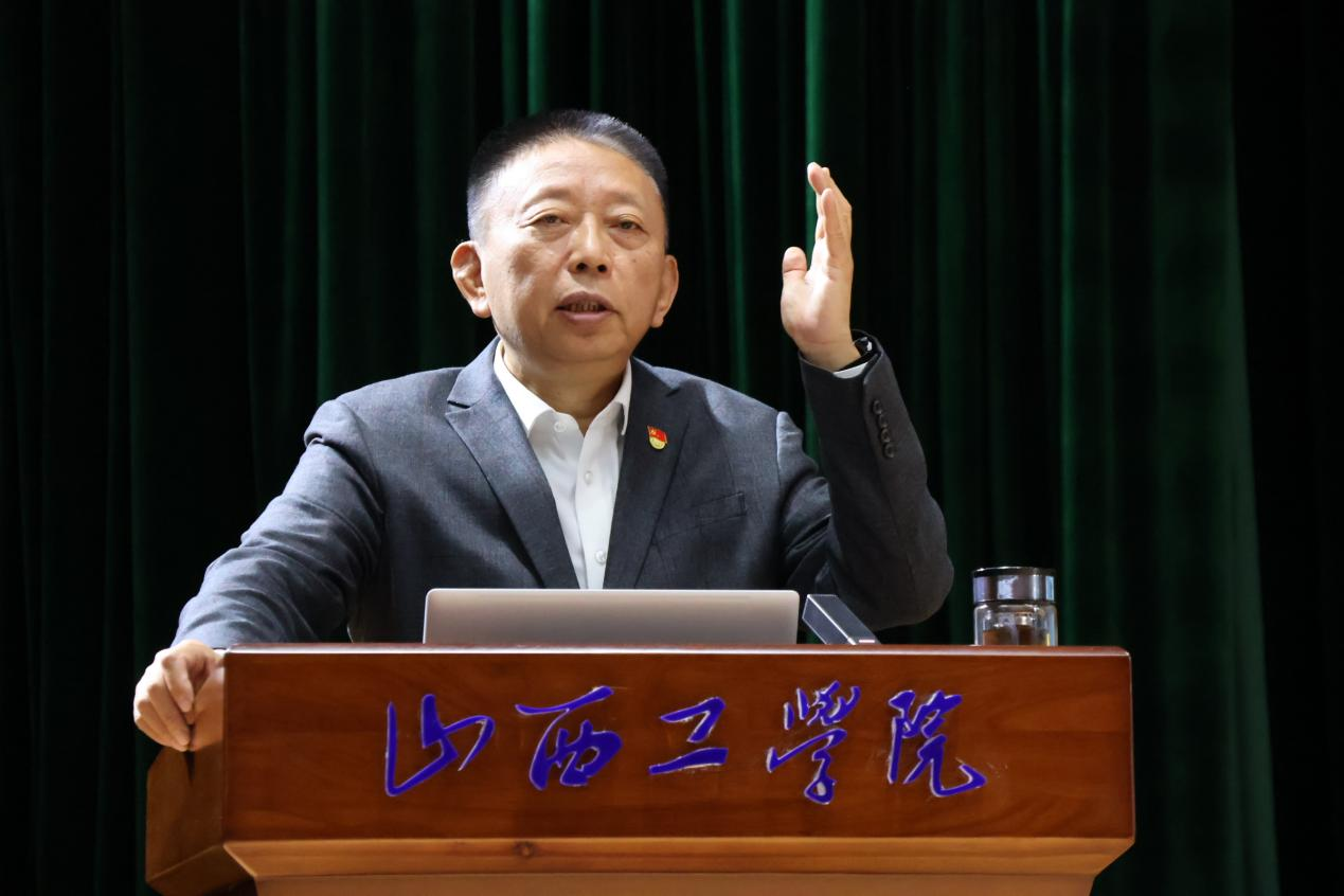 为进一步深入学习贯彻党的二十大精神,认真贯彻习近平总书记关于教育工作的重要论述精神,提升广大师生的思想素质、政治觉悟、理论水平和党性修养,10月31日晚19:00,校党委书记树学峰以“愿你乘风破浪 不负韶华时光——做一个对社会有用的人”为题为我校师生讲授专题党课。校长吴跃焕,校党委副书记刘瑞贤、孙刚,副校长吴淑琴,相关职能部门临时负责人、二级学院院长/党务临时负责人,2023级全体辅导员与团学干部及本期入党积极分子共同聆听了党课。党课由刘瑞贤主持。