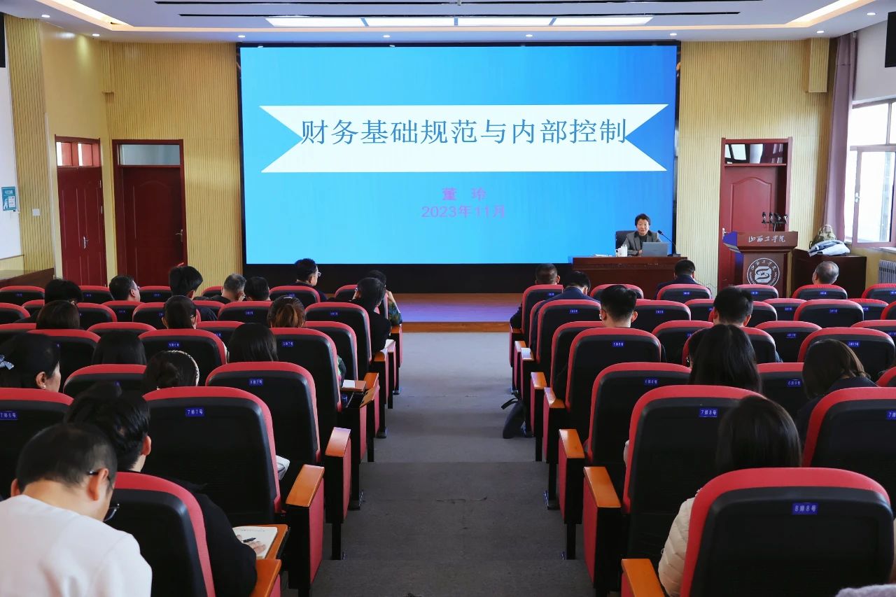 为深入实施第二届“清廉文化月”活动,11月21日下午,我校特邀山西省财政厅内控专家、太原理工大学财务处原处长董玲教授在治学楼四层学术报告厅作“清廉文化月”内部控制建设主题培训会。校党委书记树学峰,校长吴跃焕,校党委副书记刘瑞贤、孙刚,副校长田忠刚出席会议。各职能部门临时负责人,各二级学院院长及党务临时负责人、相关工作人员及部分教师参会。会议由田忠刚主持。