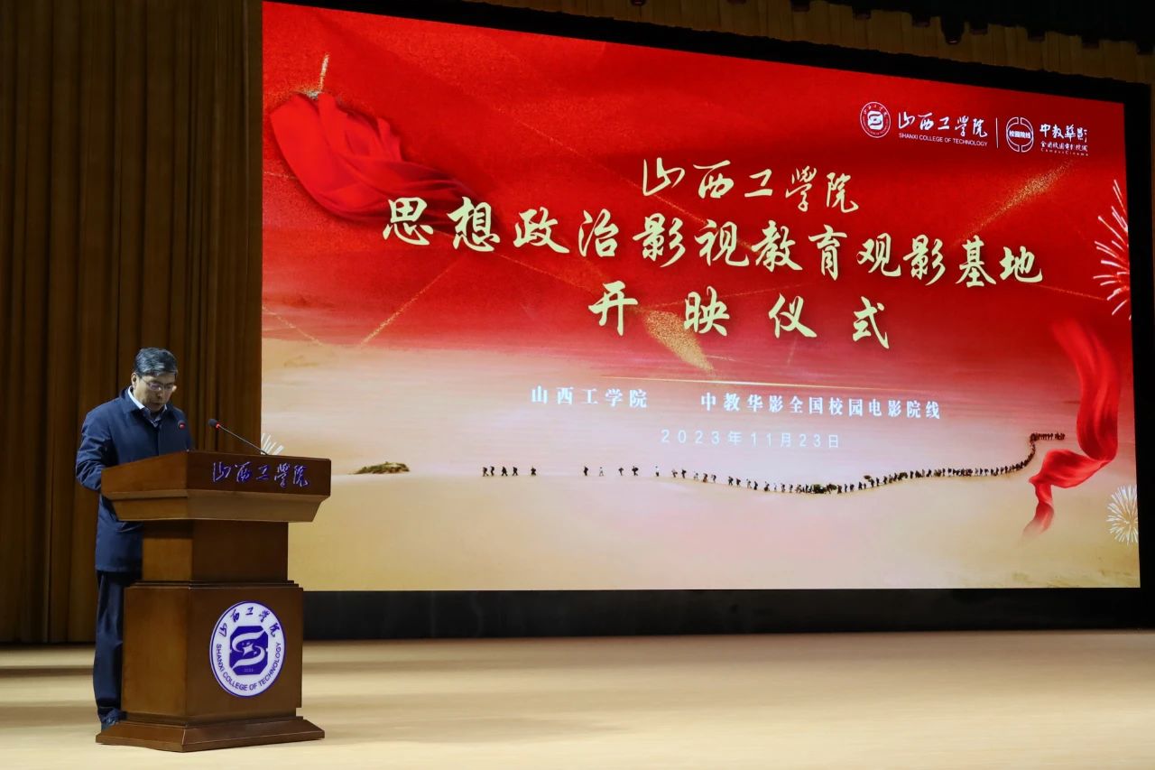 为进一步推动校园文化蓬勃发展,发挥影视作品对广大师生思想引领和价值导航作用,11月23日下午,我校在知行会堂举办“思想政治影视教育观影基地”揭牌暨思政影院开映仪式。校党委副书记孙刚,副校长郝根彦出席仪式,各职能部门、各二级学院教师和学生代表参加仪式并共同观看了首映电影。