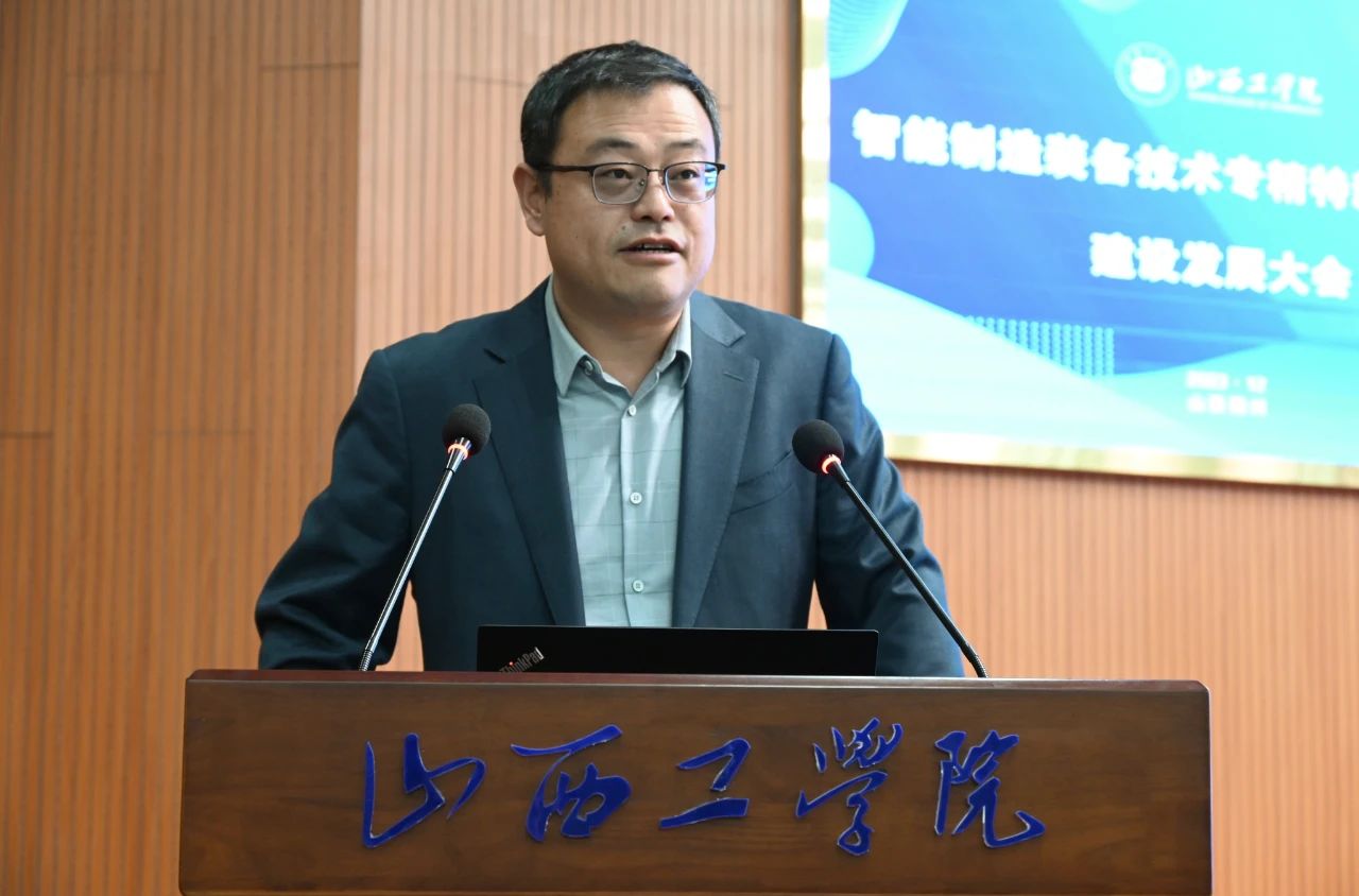 曾志强以“智能制造装备技术专精特新产业学院建设”为题作汇报。他对朔州专精特新行业产业背景进行了剖析,详细介绍了智能制造工程学院的建设理念、目标、课程设置以及专精特新产业学院建设情况、未来规划等内容。他表示,将大力推动智能制造装备技术专精特新产业学院建设,全力打造成为服务地方相关产业领域的桥头堡。