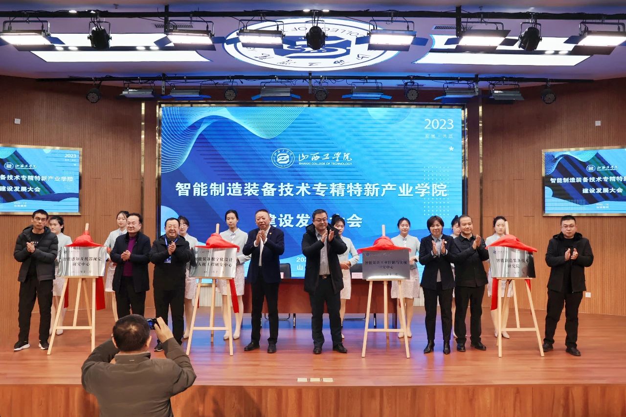 紧接着,进行了揭牌仪式。树学峰与朔州市教育工委常务副书记王植共同为智能制造装备技术研究院揭牌;吴淑琴与北京润尼尔科技股份有限公司副总裁罗涛为智能装备工业控制与实现研究中心揭牌;田忠刚与中科苏州机器视觉技术研究院教育事业处副处长安振江为智能装备数字化设计与人机工程研究中心揭牌;刘瑞贤与朔州陶瓷行业协会副秘书长贾建国为智能感知及机器视觉研究中心揭牌。