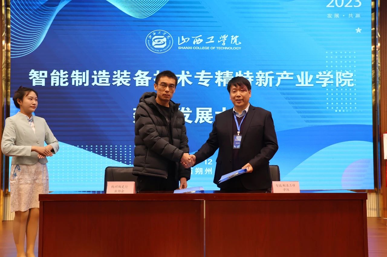 智能制造工程学院、智能制造装备技术专精特新产业学院院长曾志强分别与中科苏州机器视觉技术研究院、朔州市陶瓷行业协会签订共建框架协议。