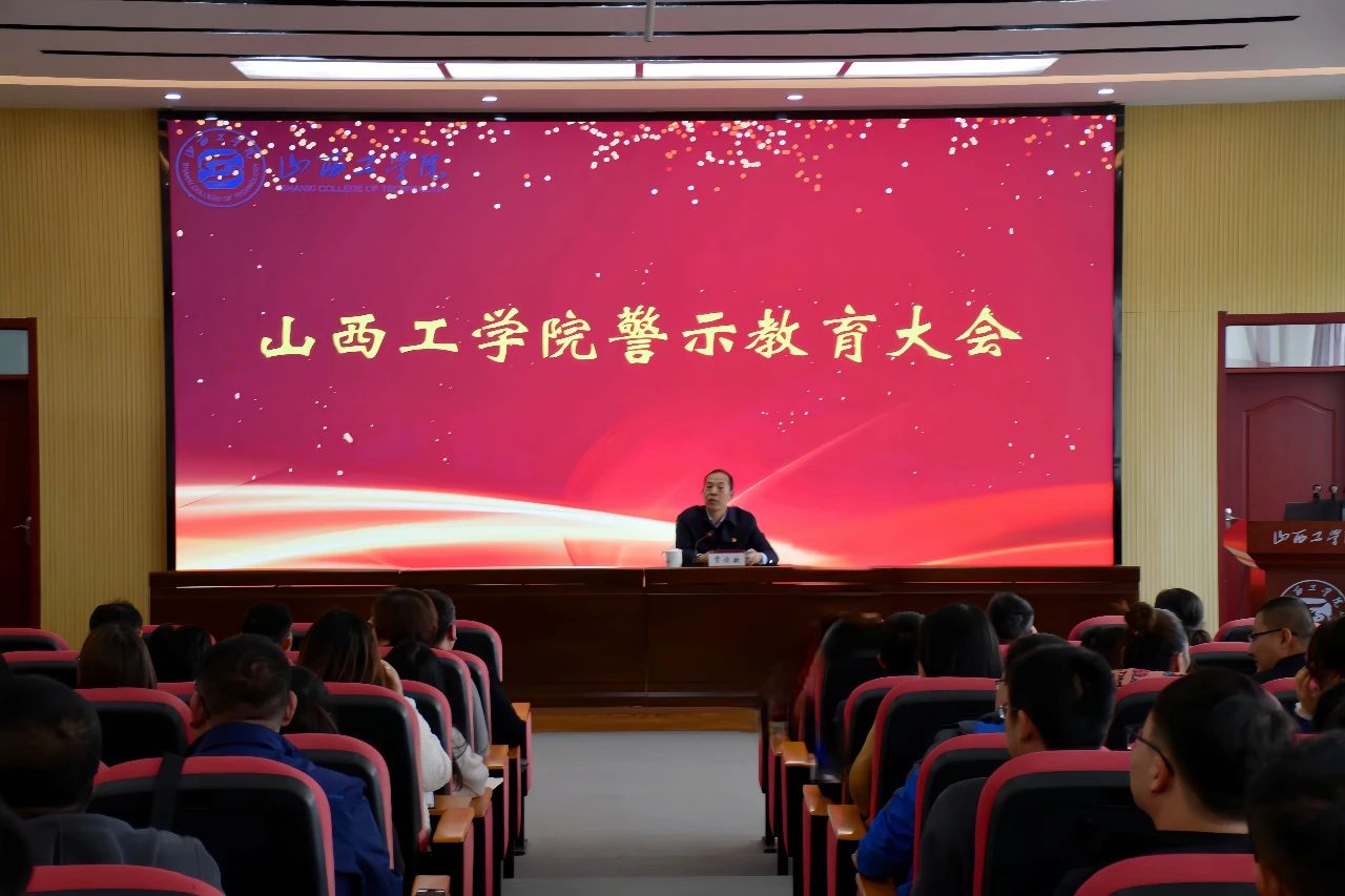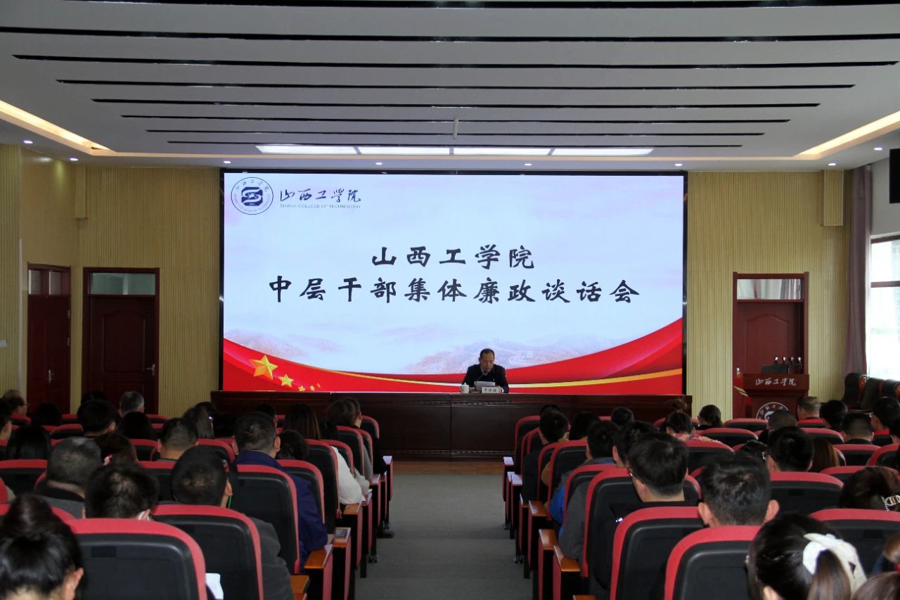 2023年4月27日下午,我校在治学楼四层报告厅组织开展中层干部集体廉政谈话,召开教工党员廉洁教育及警示教育大会。校纪委书记贾俊敏主持会议并讲话。全体在校领导、各临时机构负责人、各二级学院院长/党务临时负责人、全体教工党员参加会议。