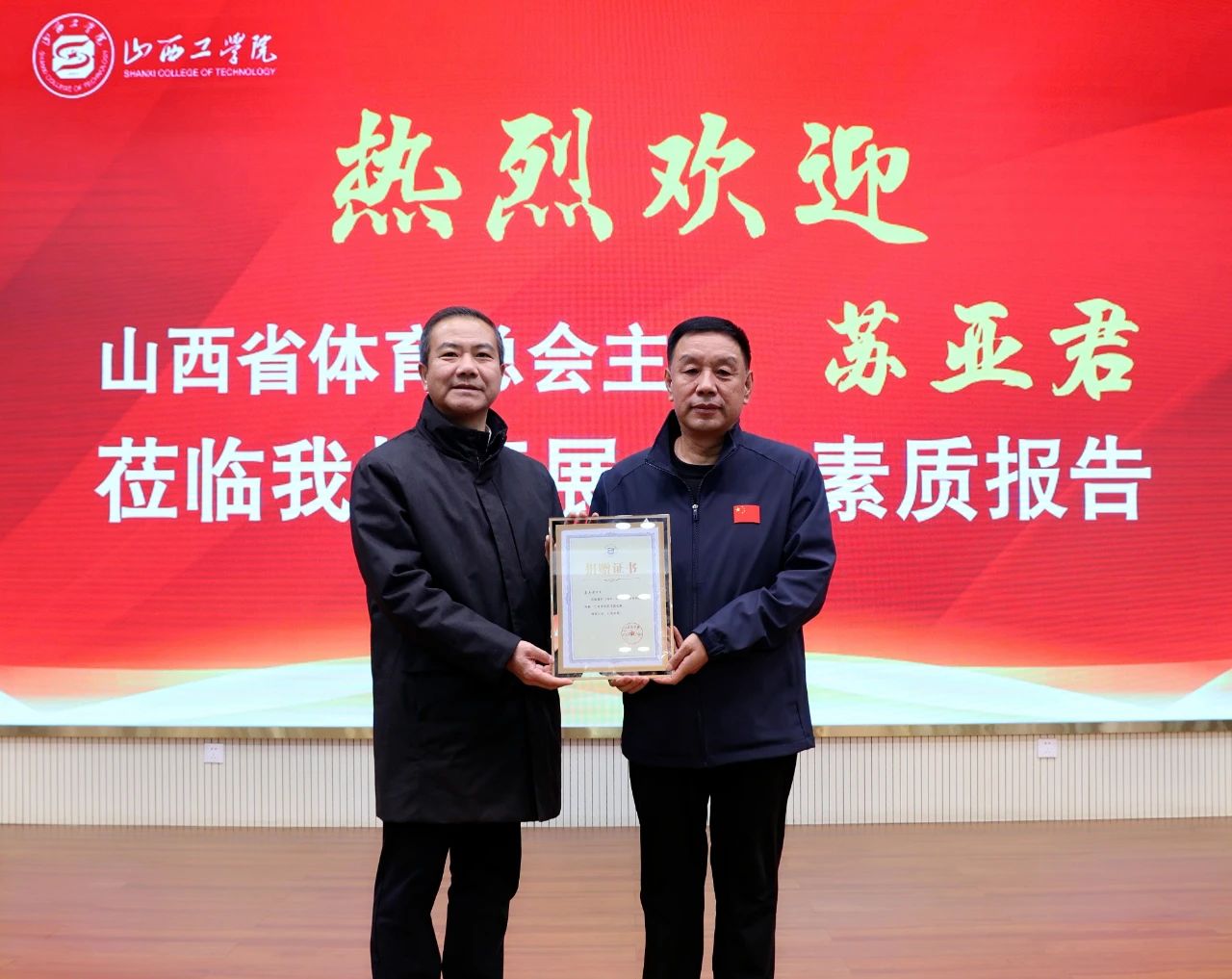 讲座中,苏亚君以《诗华》中一首首即兴赋吟、挥洒自如的诗作为主线,娓娓道来山西体育波澜壮阔、荡气回肠的历史故事,细细讲述工作生涯倾情为民、攻坚克难的无悔过往,真诚传授奋斗路上励精图治、九转功成的创业心经。他从人生、文化、体育等多个角度,将十二载体育人生的所见、所思、所感、所悟,以及那份“痴痴心不改,杲杲成功时”的体育情缘与大家进行分享,使在场的广大师生如身临其境般真切感受到了诗词的魅力、领略到了体育的精神、体悟到了体育的力量。最后,他深情寄语广大师生,一要树牢“健康第一”的理念;二要锤炼拼搏进取的精神;三要保持干事创业的情怀;四要拥有快乐生活的态度。