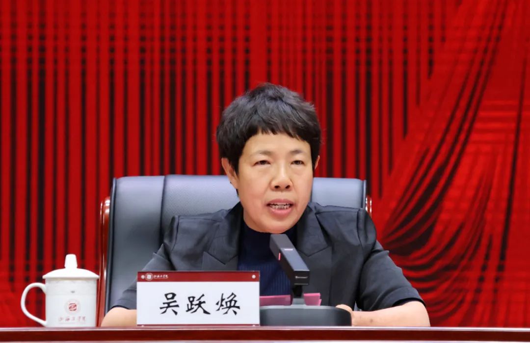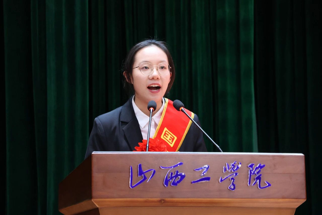 吴跃焕作了题为“弘扬五四精神 传承奋进力量”的讲话。她首先代表学校党委和行政,向长期以来奋战在青年工作各条战线的广大师生们表示衷心感谢,向受到表彰的先进集体和个人表示热烈祝贺。她带领大家一同回顾了五四运动那段波澜壮阔的历史,阐述了五四精神在当今时代的价值和意义。她指出,青年,如同初升的太阳,洋溢着无尽的光和热,散发着朝气蓬勃的气息。在过去的一年,学校共青团认真贯彻落实学校党委和上级团组织工作要求,团结带领广大团员青年主动融入学校中心工作,牢牢把握政治引领这一根本任务,以服务青年成长成才为主题,做了大量卓有成效的工作,以思想教育引导青年、组织建设凝聚青年、文化活动熏陶青年、社会实践锤炼青年、志愿服务提升青年,充分展现出自信自强、刚健有为的精神风貌。她希望,全校青年师生要牢记习近平总书记谆谆教诲,认真贯彻落实党中央决策部署和省委工作要求,积极投身到新时代中国特色社会主义伟大事业中去,在谱写中国式现代化山西篇章中挺膺担当、奉献青春力量。一要坚定信念、树立志气,做理想远大的有志青年。广大青年要厚植爱党、爱国、爱校情怀,主动把个人发展和国家需要紧密结合起来,把个人成长同学校事业发展、社会进步紧密联系起来,擦亮信仰底色,夯实信仰根基,将爱国情、报国志转化成建功立业、服务社会的实际行动,更好实现人生价值、升华人生境界。二要砥砺奋进、永葆锐气,做奋发进取的有为青年。广大青年要以青春作桨、梦想为帆,守正创新、担当作为,用激情和创新诠释“请党放心,强国有我”的铮铮誓言,让理想信念在创业奋斗中升华,让青春在创新创造中闪光。三要苦练本领、增长才干,做敢为人先的有识青年。广大青年要增强学习的紧迫感,以如饥似渴、孜孜不倦的态度投入到学习中去。在学习中历练真本领,在实干中增长真本事,以敢为人先的超凡魄力,举起创新创业大旗,做勇攀高峰、开拓进取的时代先锋,创造出属于这个新时代的青春业绩。