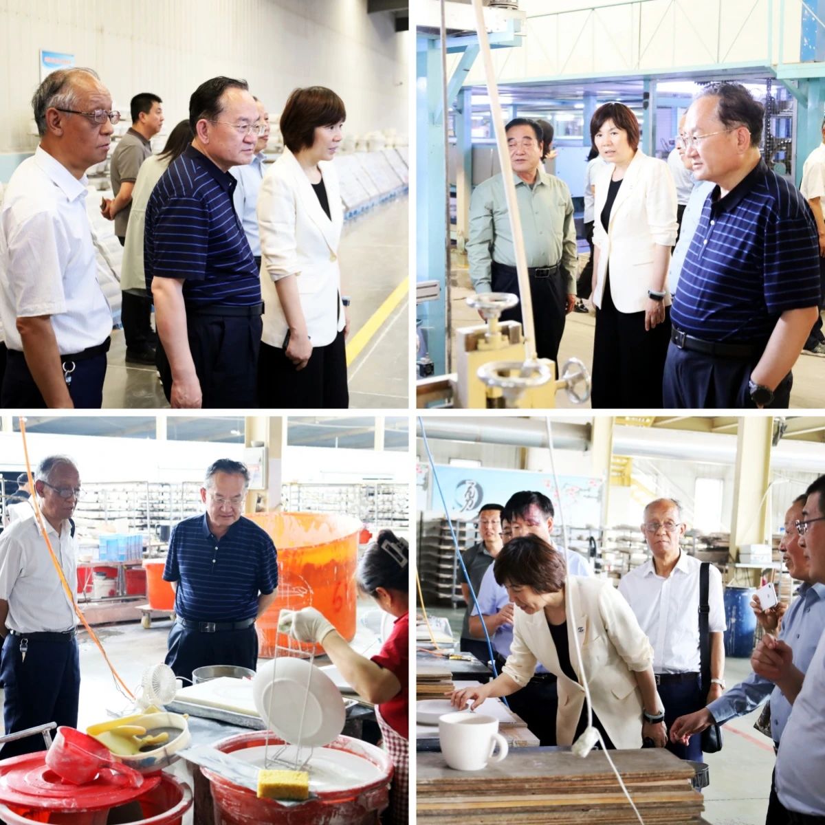 刘瑞贤、吴淑琴一行先后走访应县博达瓷业有限公司、应县天顺陶瓷有限公司、怀仁尊屹陶瓷厂、怀仁锦泰陶瓷有限公司等陶瓷行业领域相关企业,并在相关企业领导的陪同下,对企业生产车间、产品研发部门、产品展厅进行了实地考察。